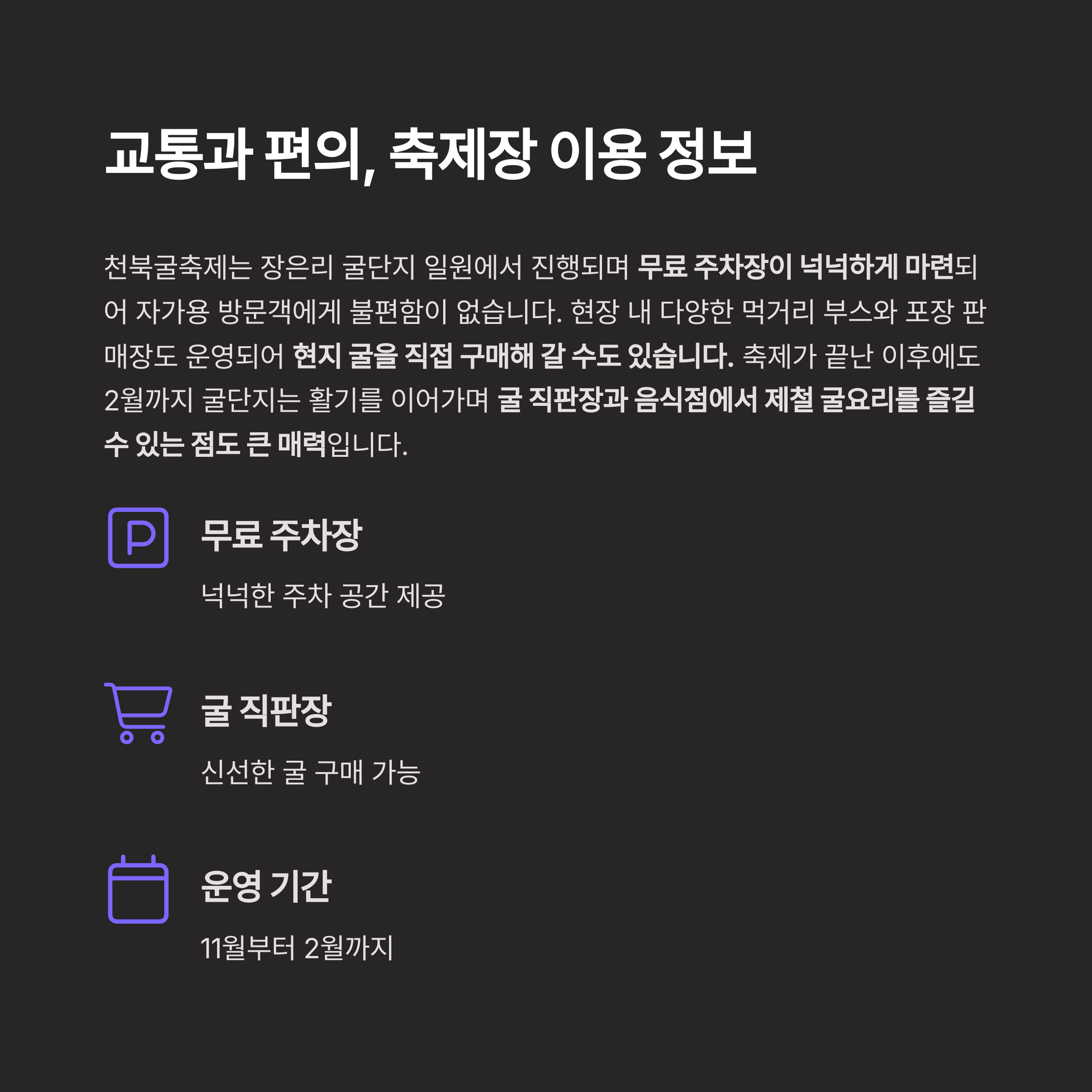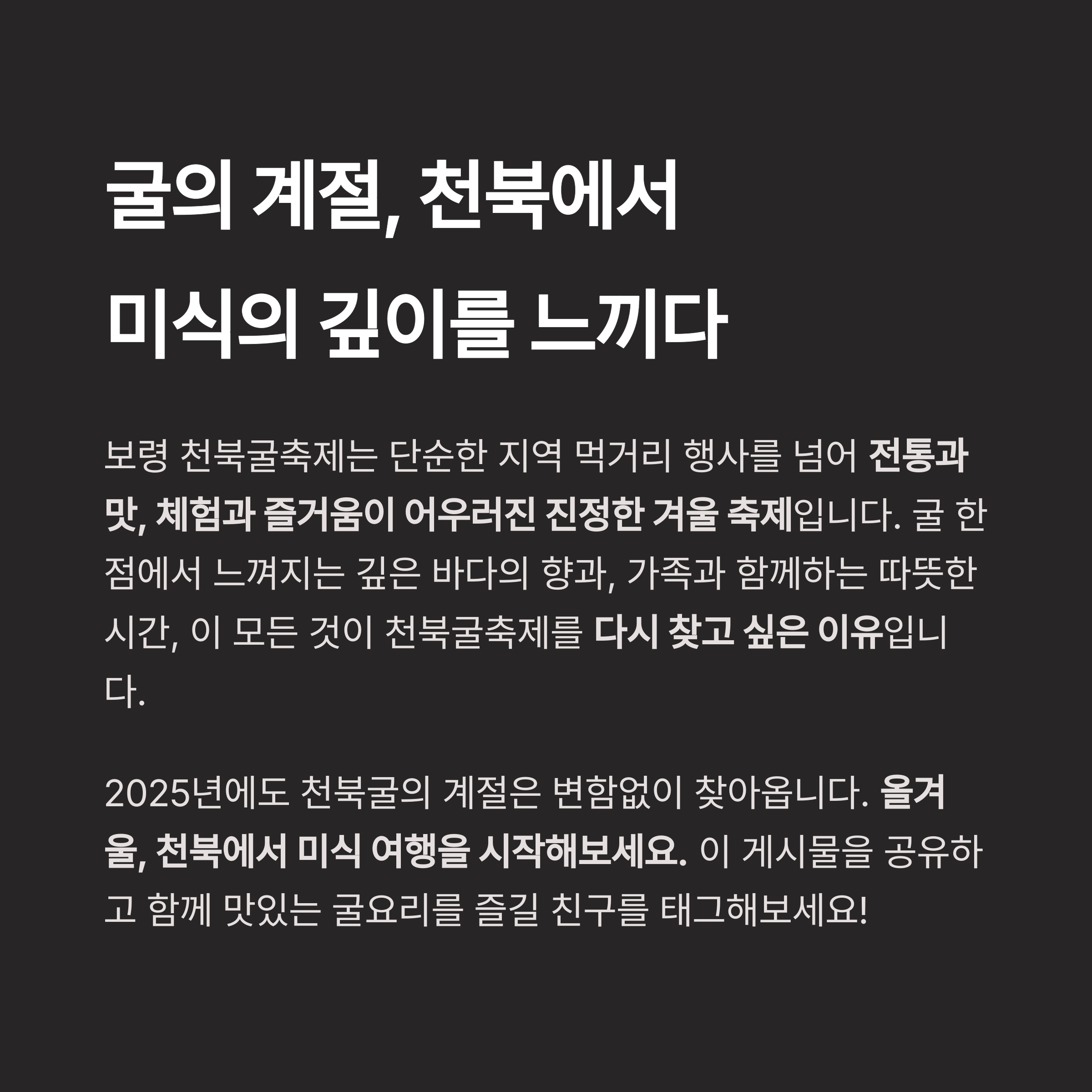이 모든 것이 천북굴축제를 다시 찾고 싶은 이유입니다.