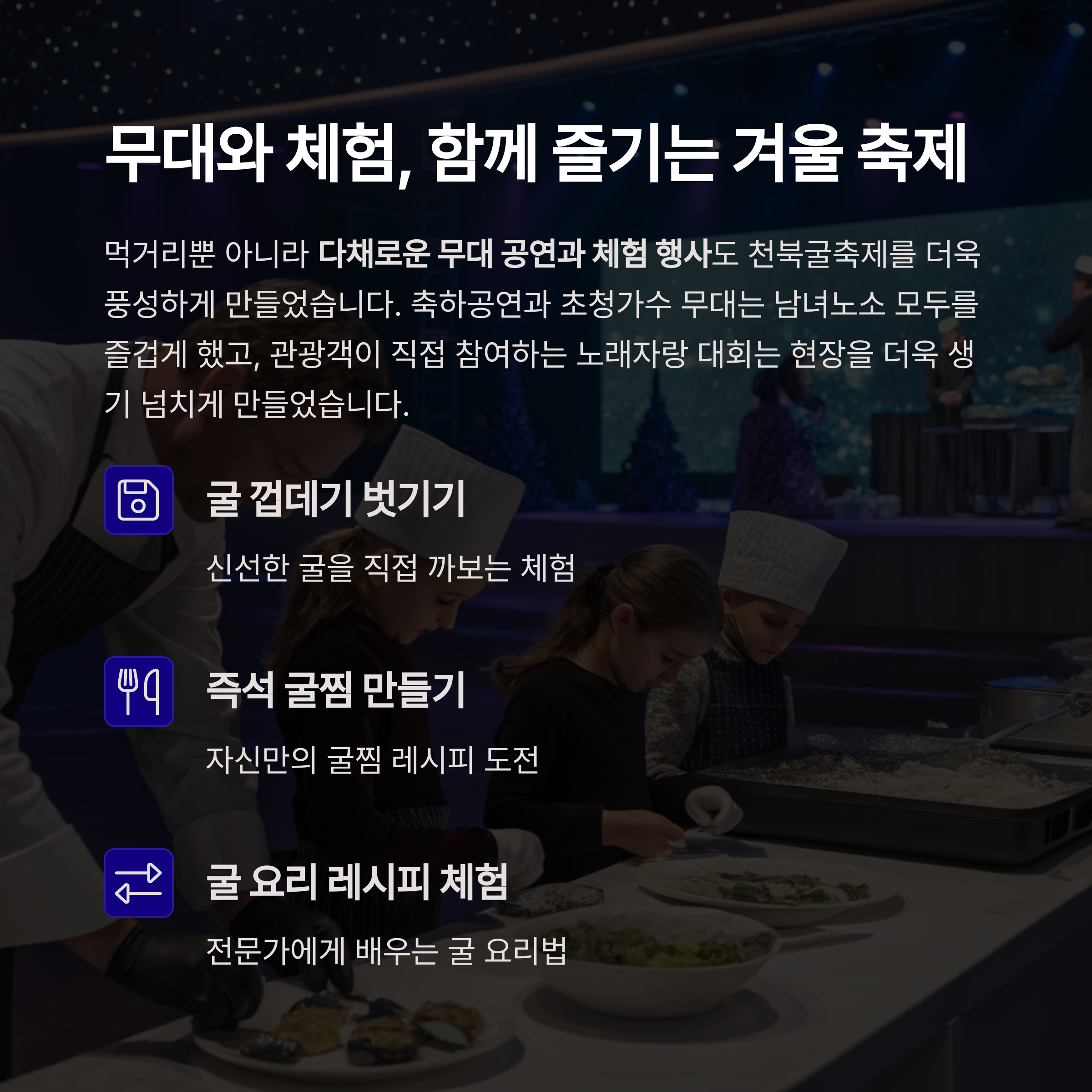 전통과 맛, 체험과 즐거움이 어우러진 진정한 겨울 축제입니다.