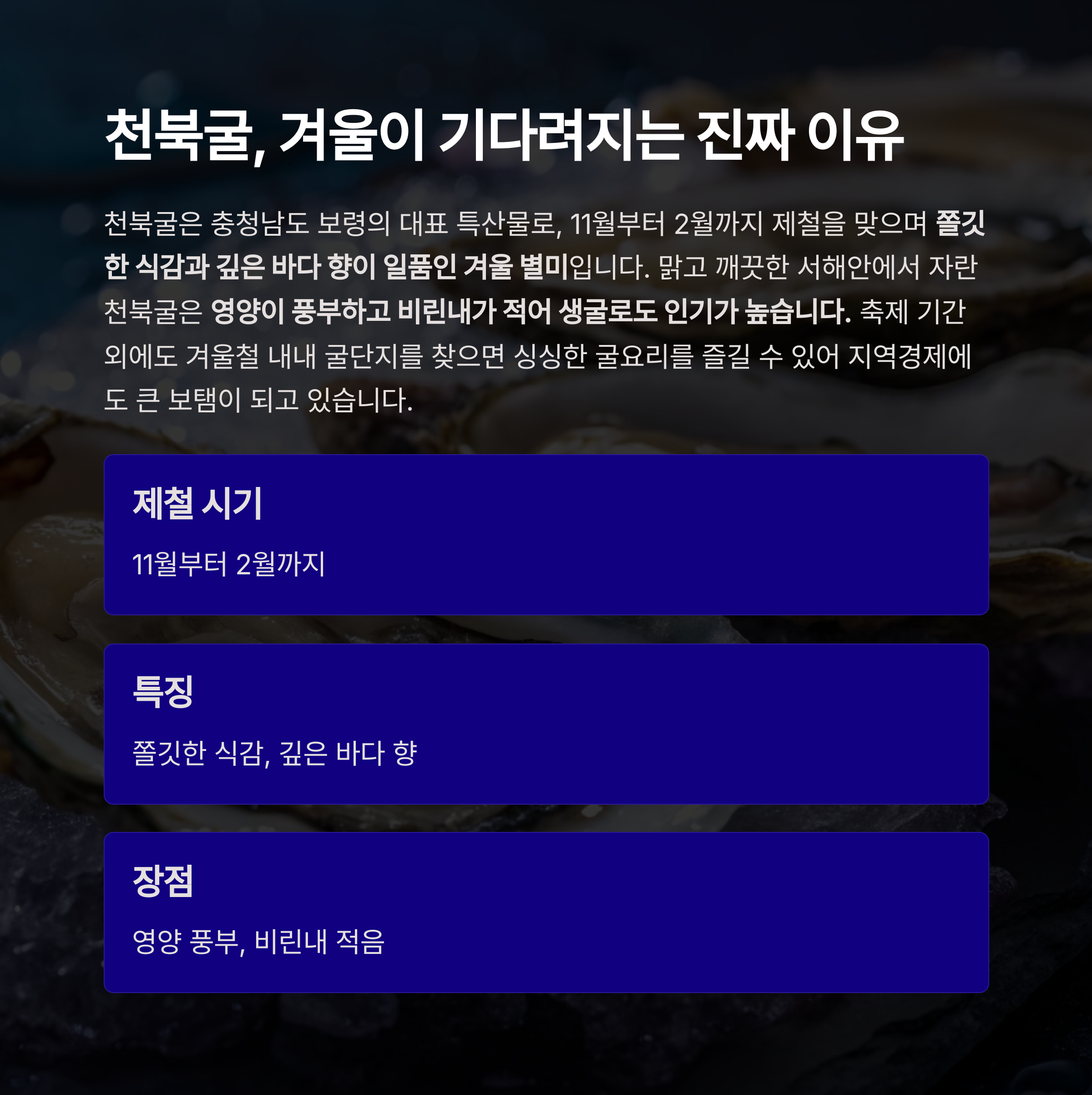 천북굴, 겨울이 기다려지는 진짜 이유