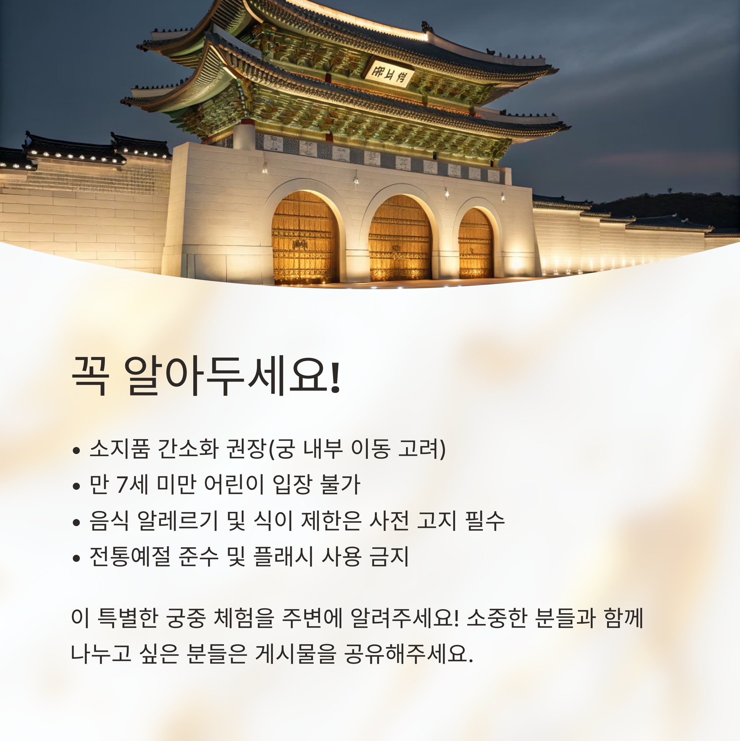 - 소지품 간소화 권장(궁 내부 이동 고려)