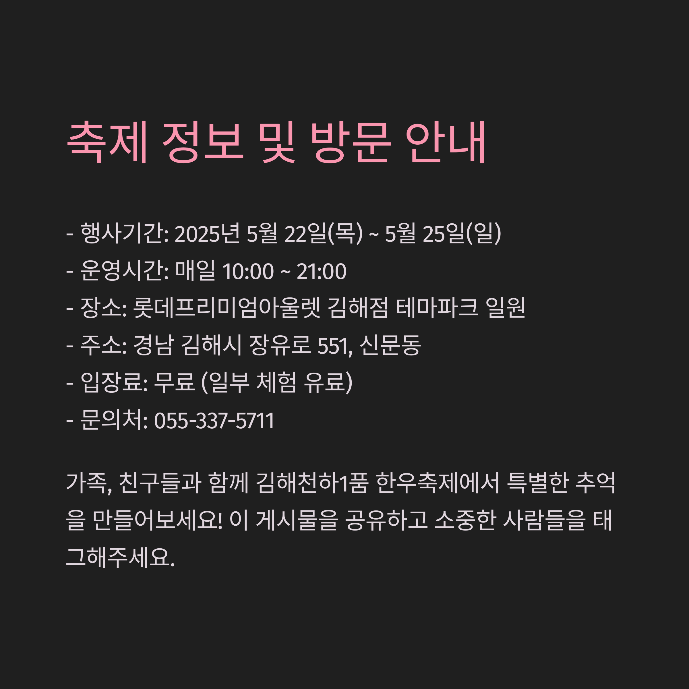 - 장소: 롯데프리미엄아울렛 김해점 테마파크 일원