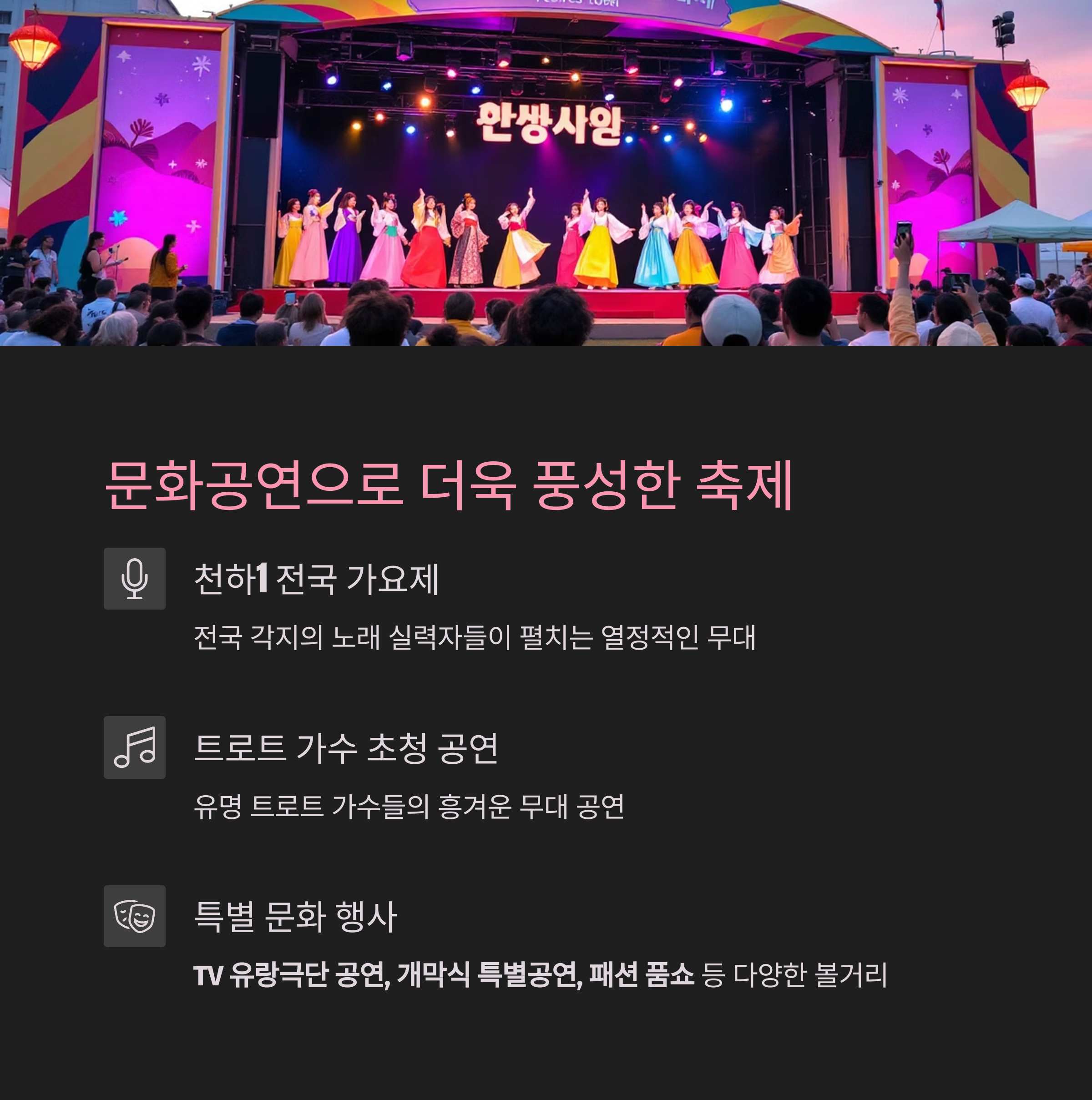 지역축제의 품격을 높이는 핵심 콘텐츠로 자리매김하고 있습니다.