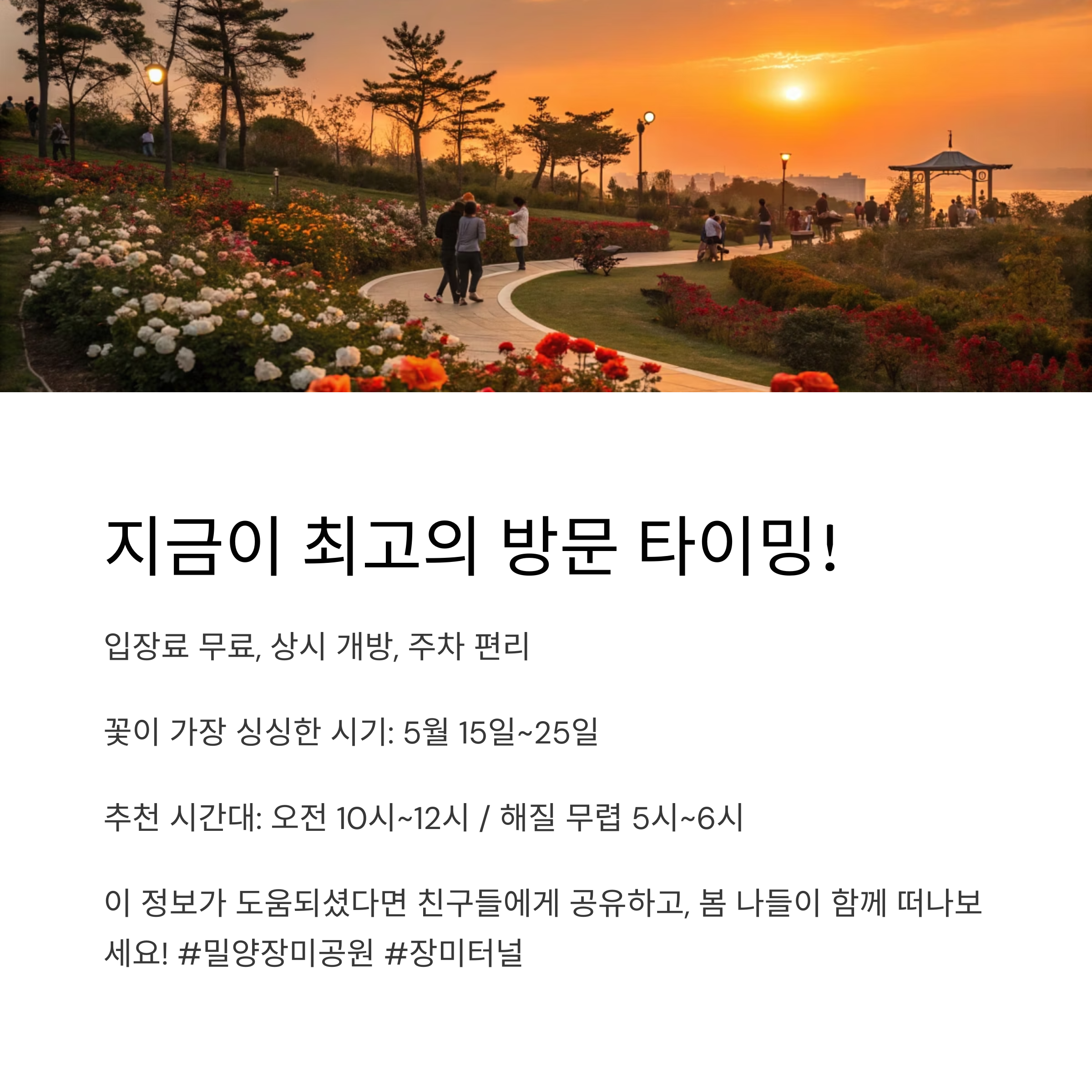 📸 해시태그 #밀양장미공원 #장미터널 등으로 SNS 업로드하면