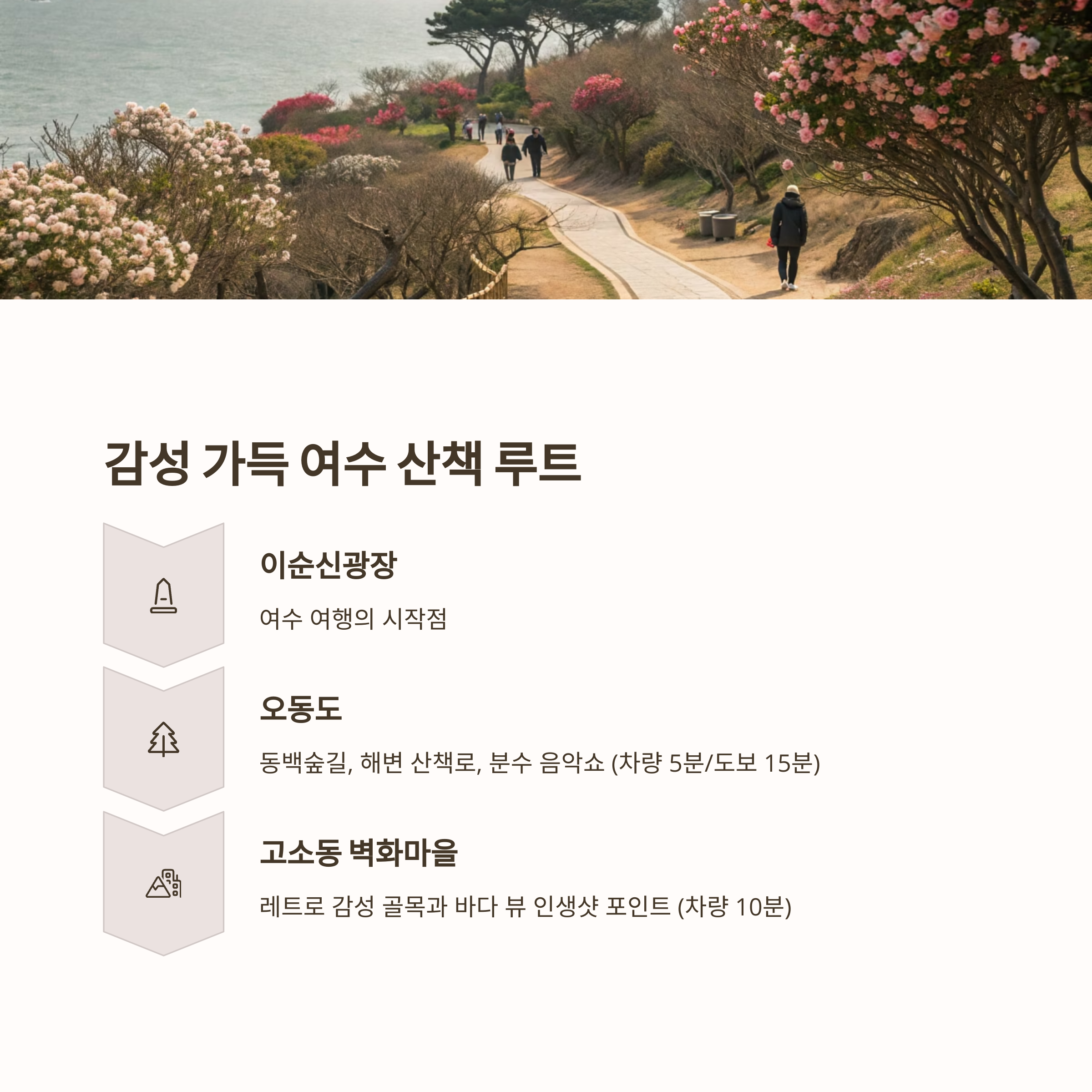 🌿 이순신광장 → 오동도 → 고소동 벽화마을 루트