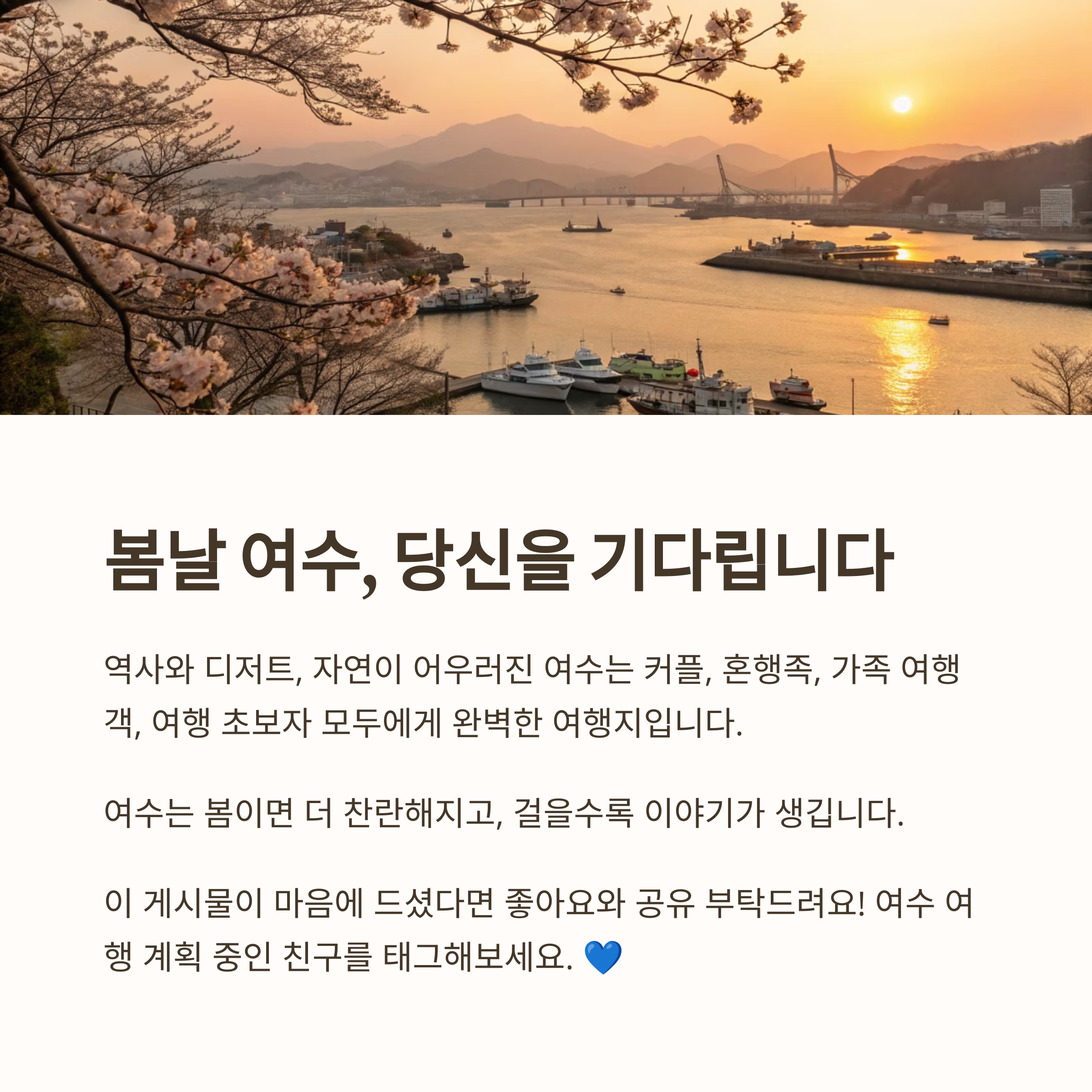여수는 봄이면 더 찬란해지고, 걸을수록 이야기가 생깁니다.