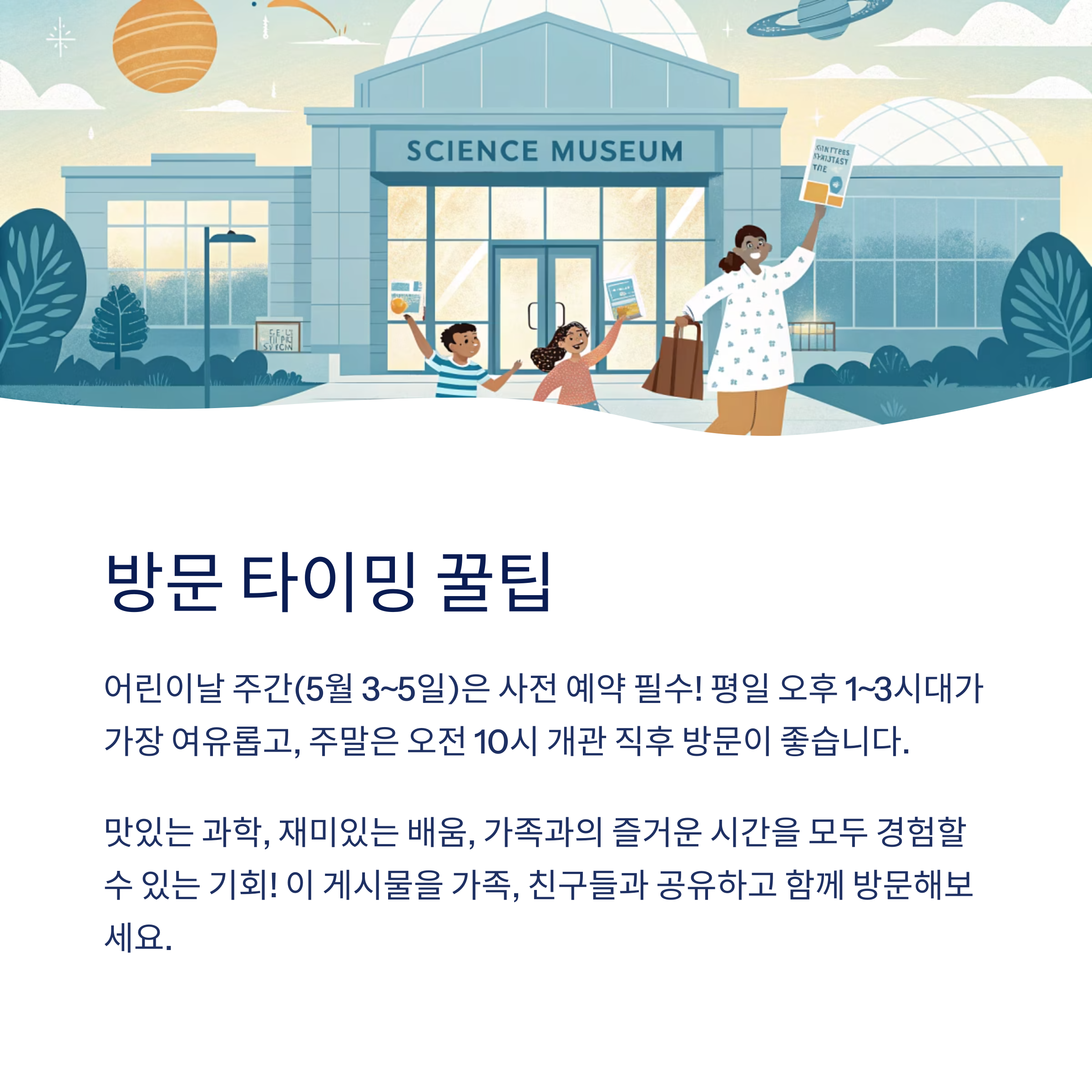 “과학관 하나로 체험·학습·휴식이 모두 가능한 가족형 복합 문화공간입니다.”