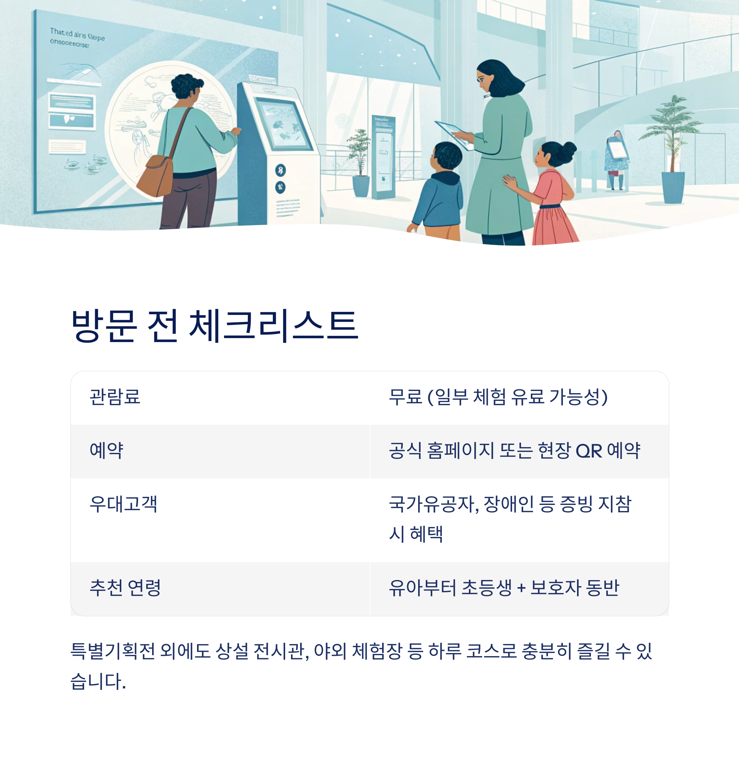 특별기획전 외에도 상설 전시관, 야외 체험장 등 하루 코스로도 충분히 알차게 즐길 수 있습니다.