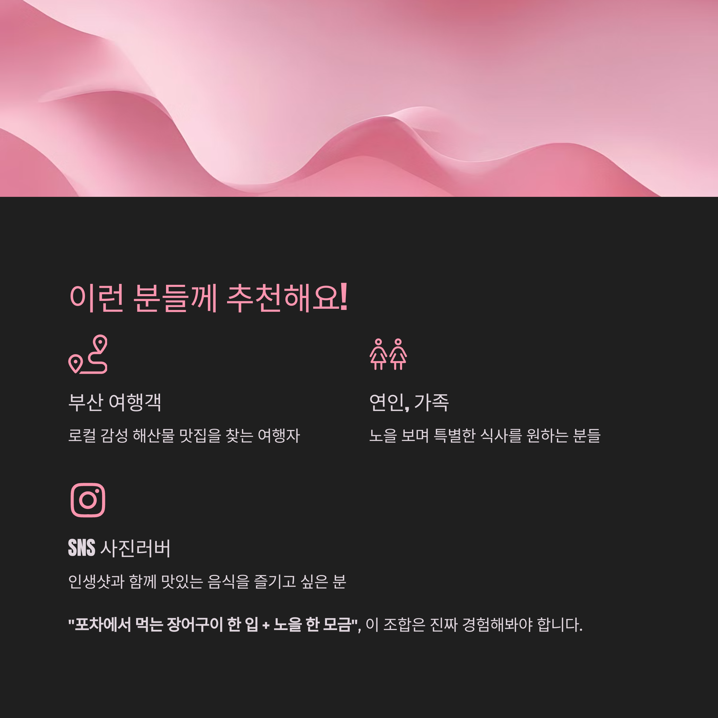 “맛있는 음식과 바다, 그 사이 어딘가에서 마음이 쉬는 순간을 경험하세요.”