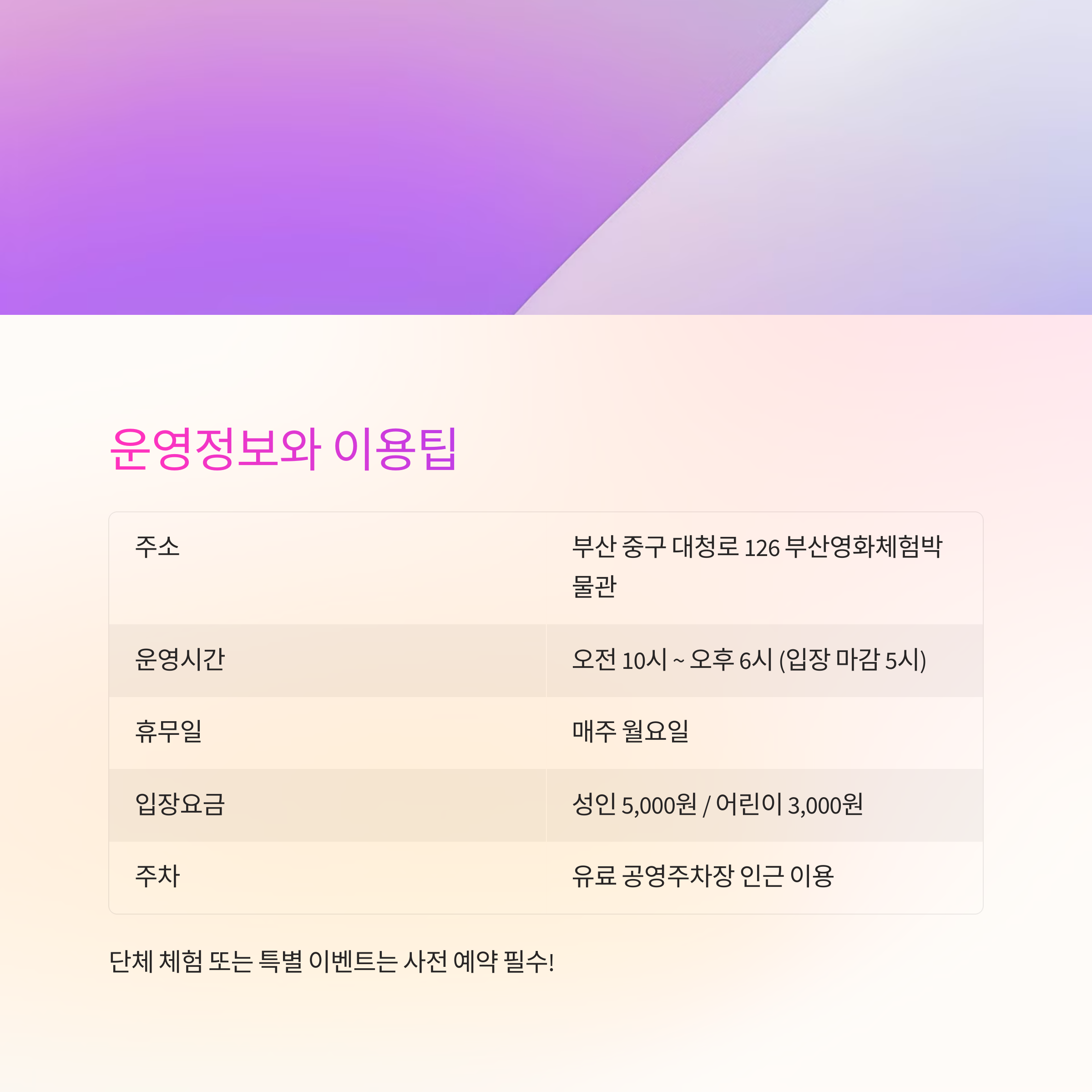 - 위치: 부산 중구 부산영화체험박물관 2층