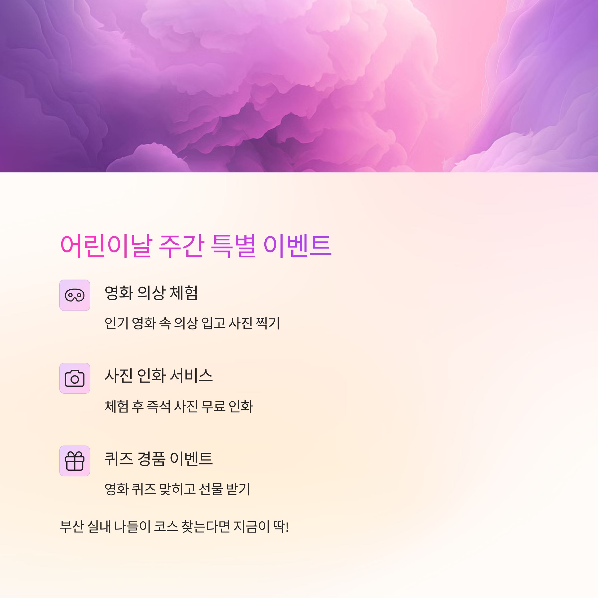 어린이날 연휴 동안만 진행되는 특별한 이벤트도 놓치지 마세요!