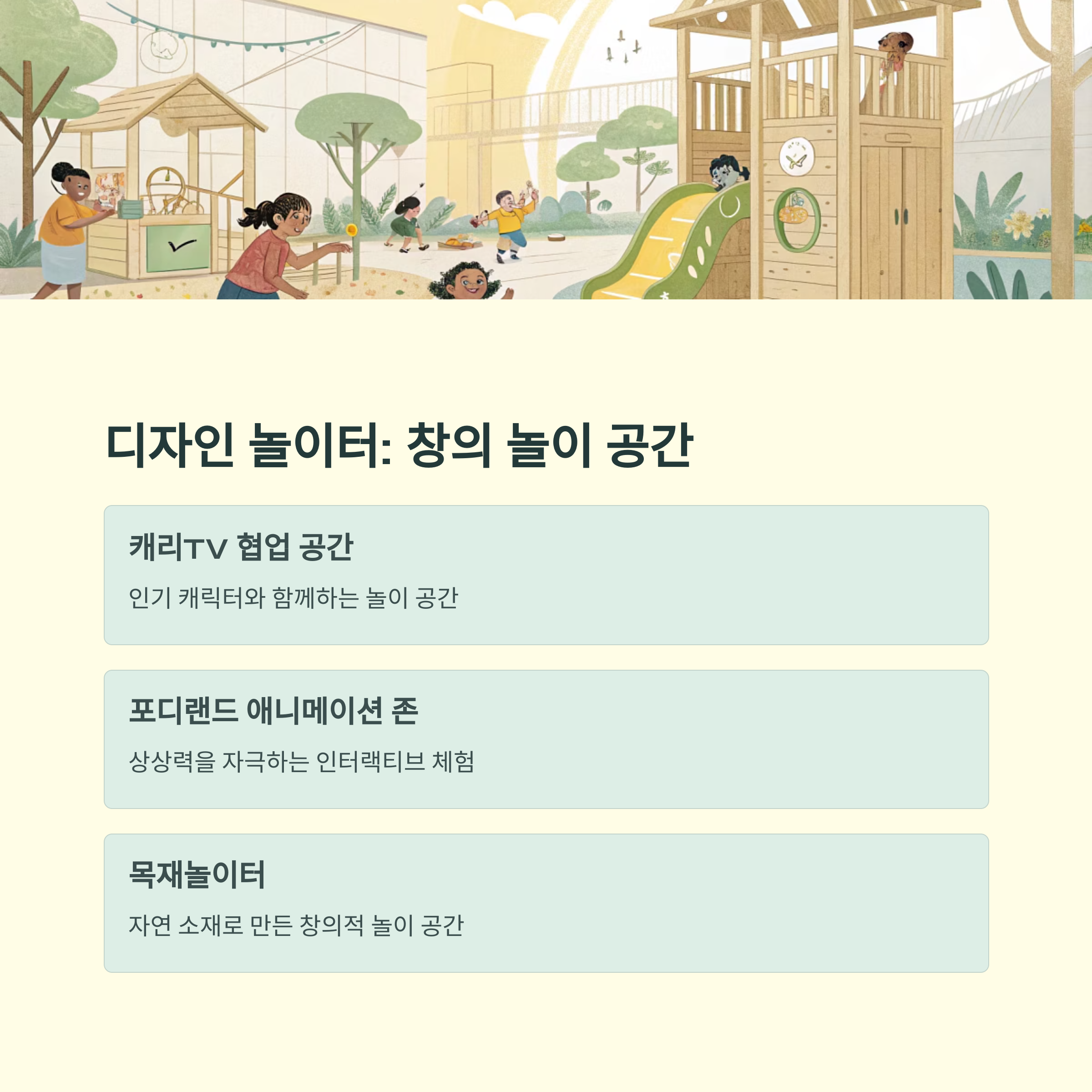 캐리TV 협업 공간, 포디랜드 애니메이션 존, 목재놀이터 등이