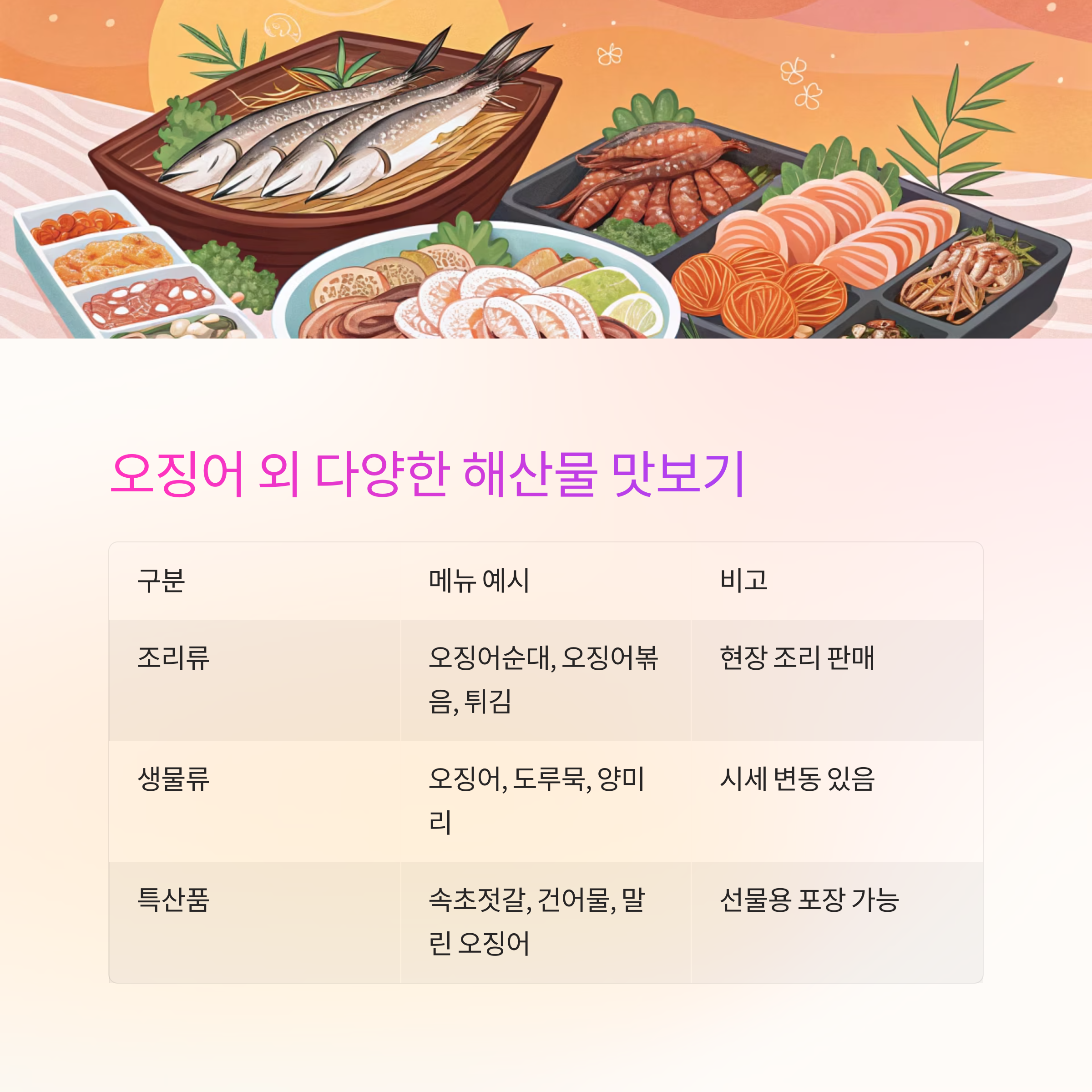 오징어 외에도 다양한 해산물과 특산물 맛보기