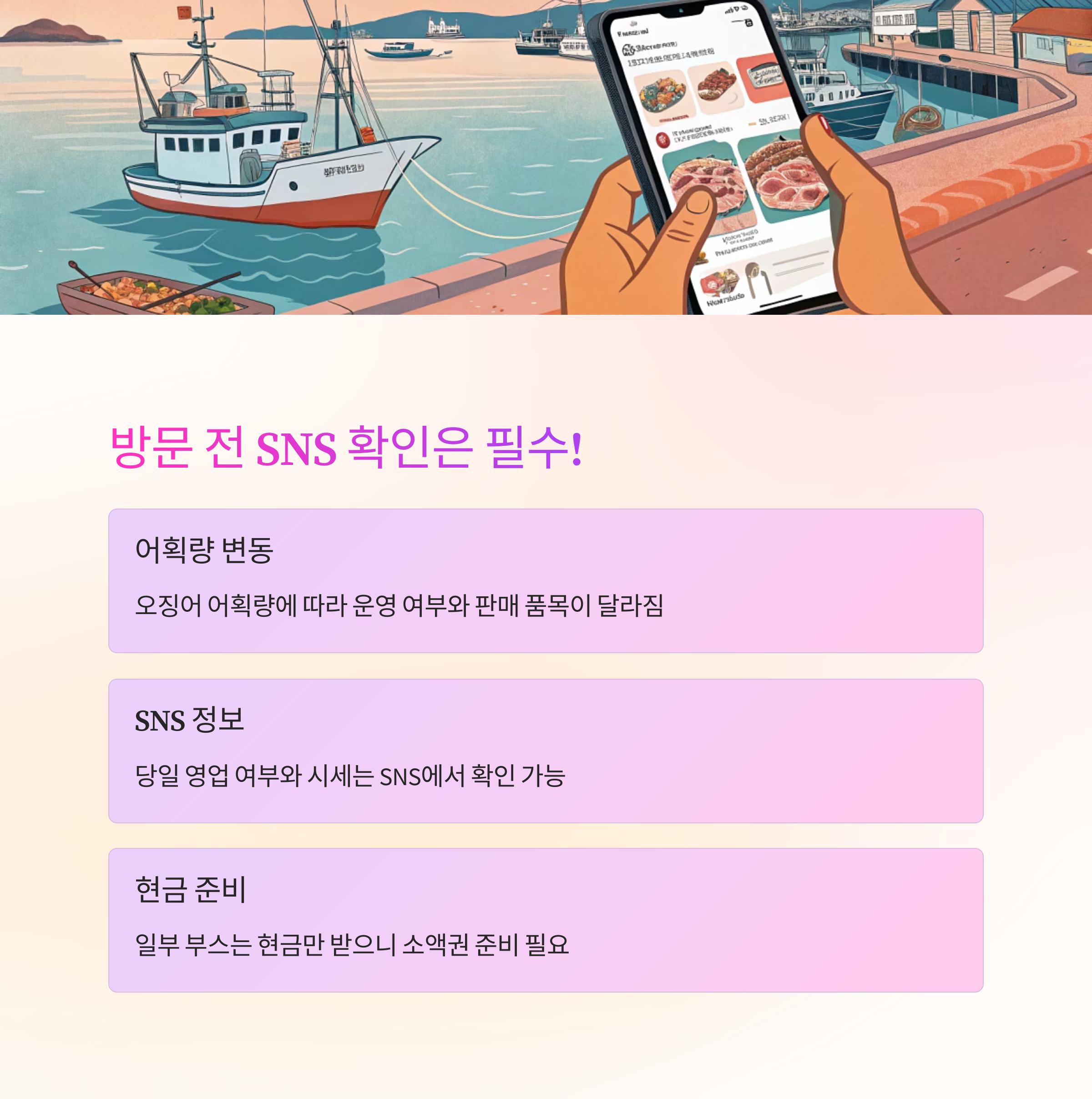 방문 전 SNS에서 당일 영업 여부나 시세 확인은 반드시 하셔야 합니다.