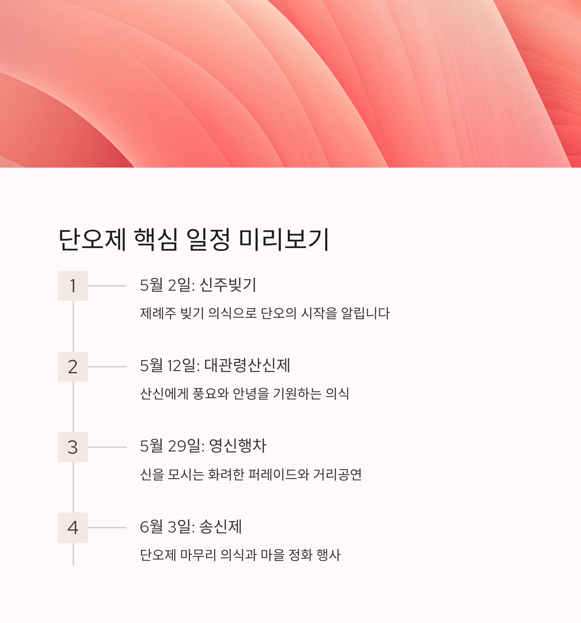 | 6월 3일 | 송신제 및 소제 | 단오제 마무리 의식, 마을 정화 |