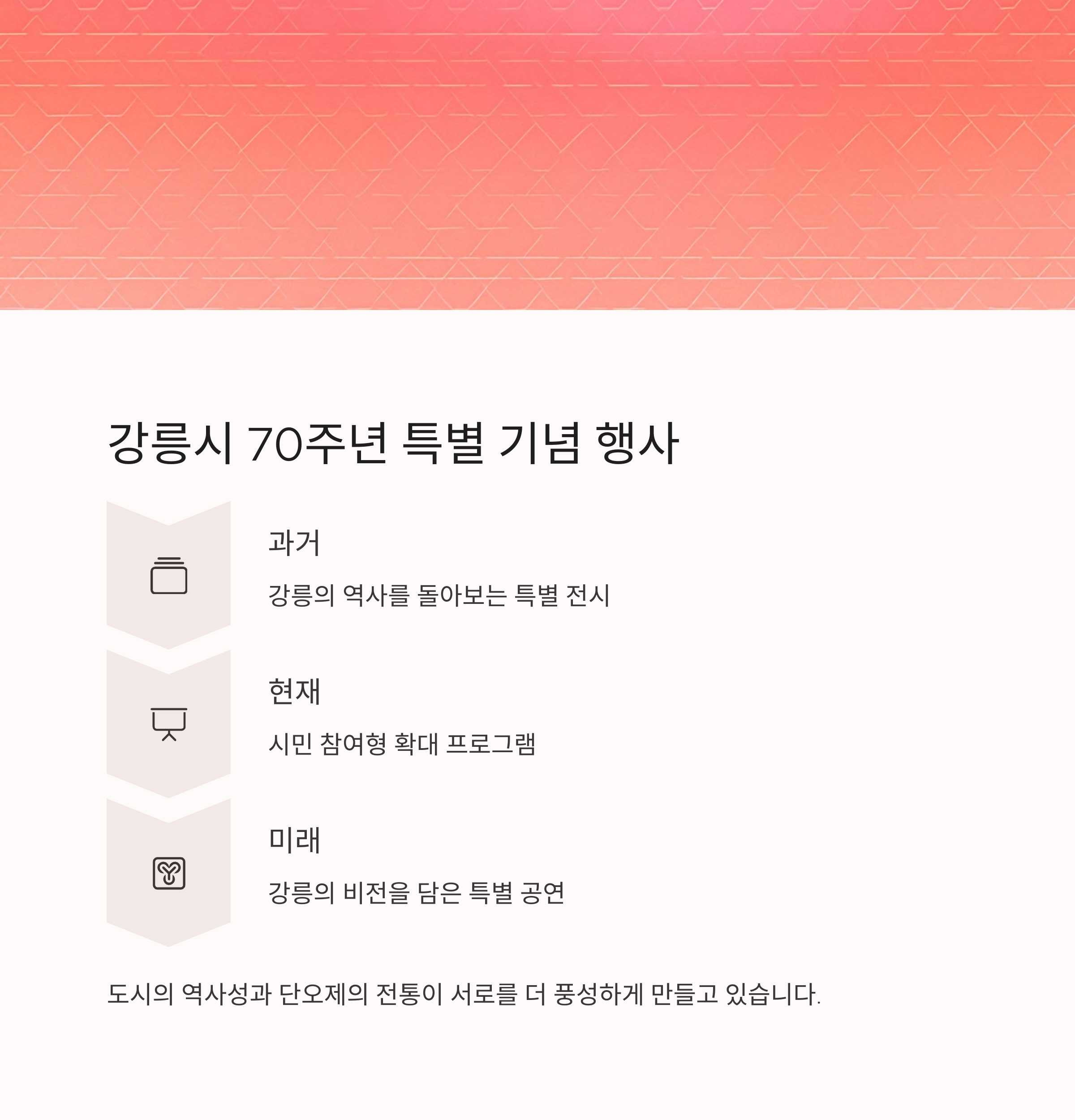 강릉시 승격 70주년도 함께 기념하며 더욱 풍성한 행사가 이어질 예정입니다.