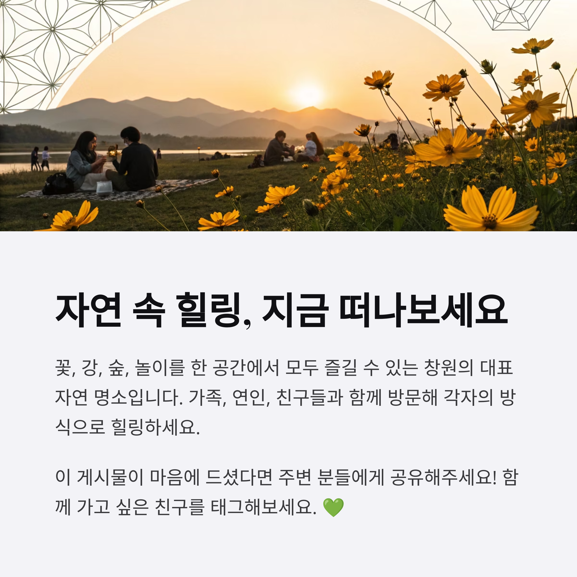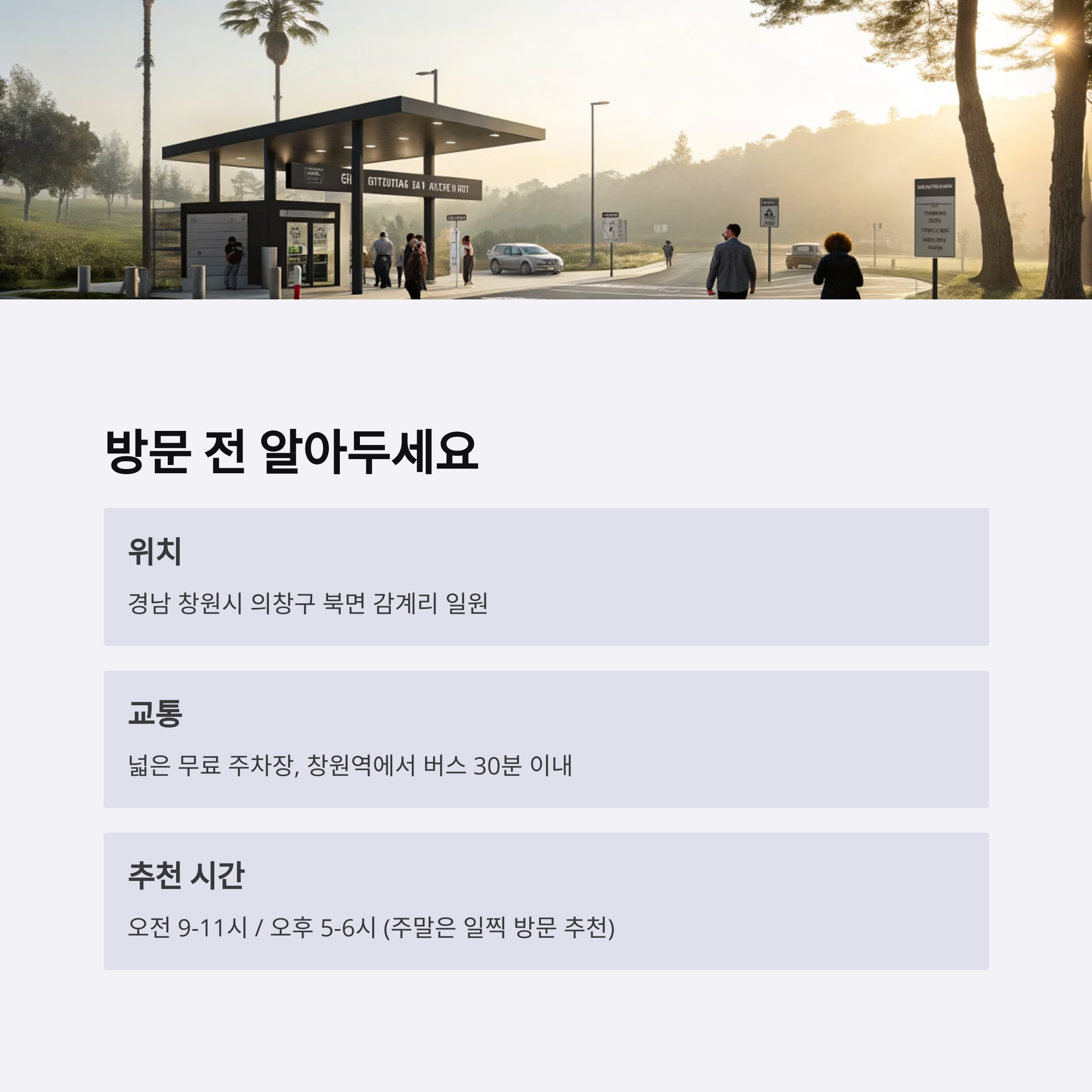 | 대중교통 | 창원역·의창구 시내에서 버스 접근 가능 (30분 이내) |