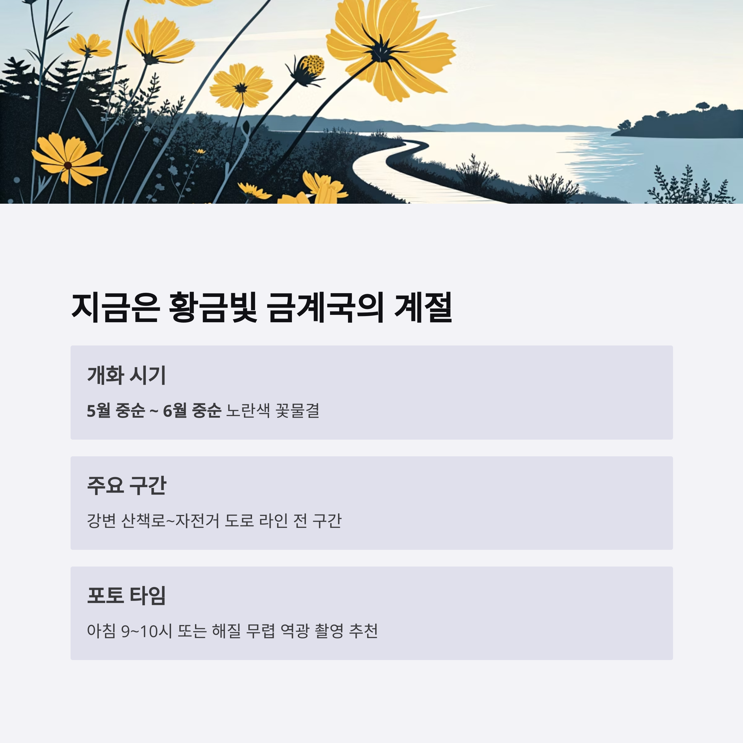 - 금계국 개화 시기: 5월 중순 ~ 6월 중순