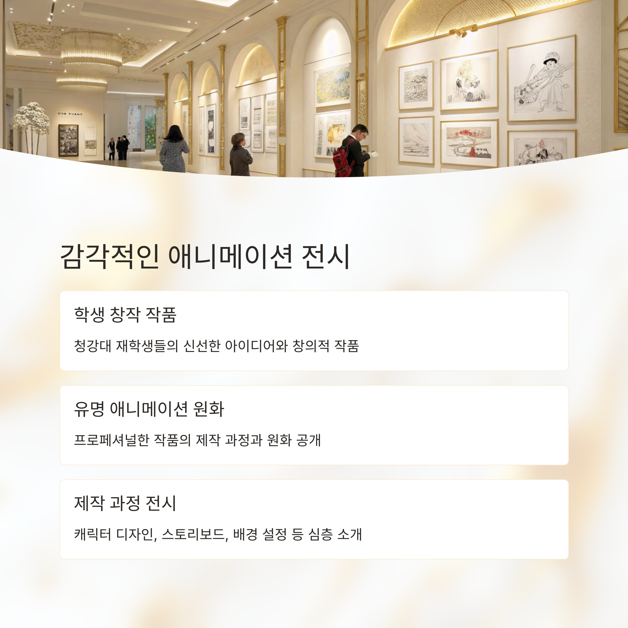 축제에서는 청강대 재학생의 창작 작품과 유명 애니메이션의 원화, 제작 과정 등이
