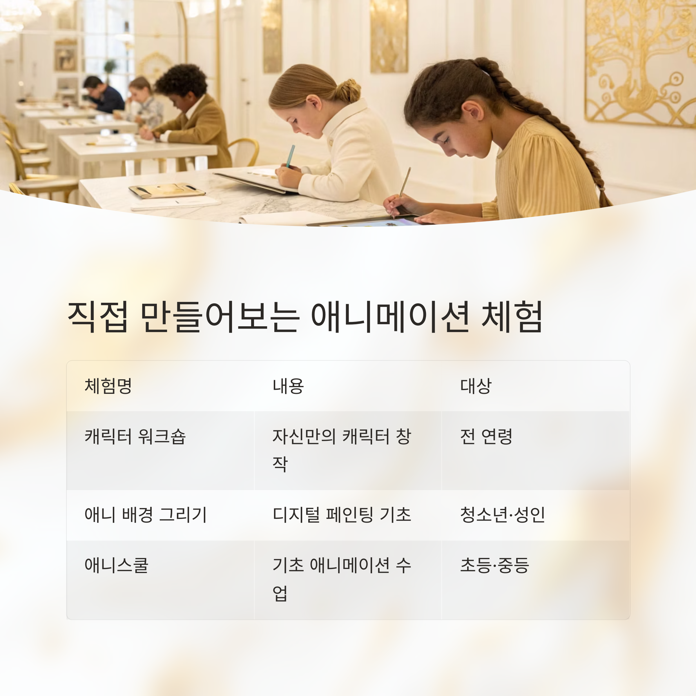 체험 프로그램에서는 직접 애니메이션을 제작해보는 워크숍과 캐릭터 디자인 클래스가