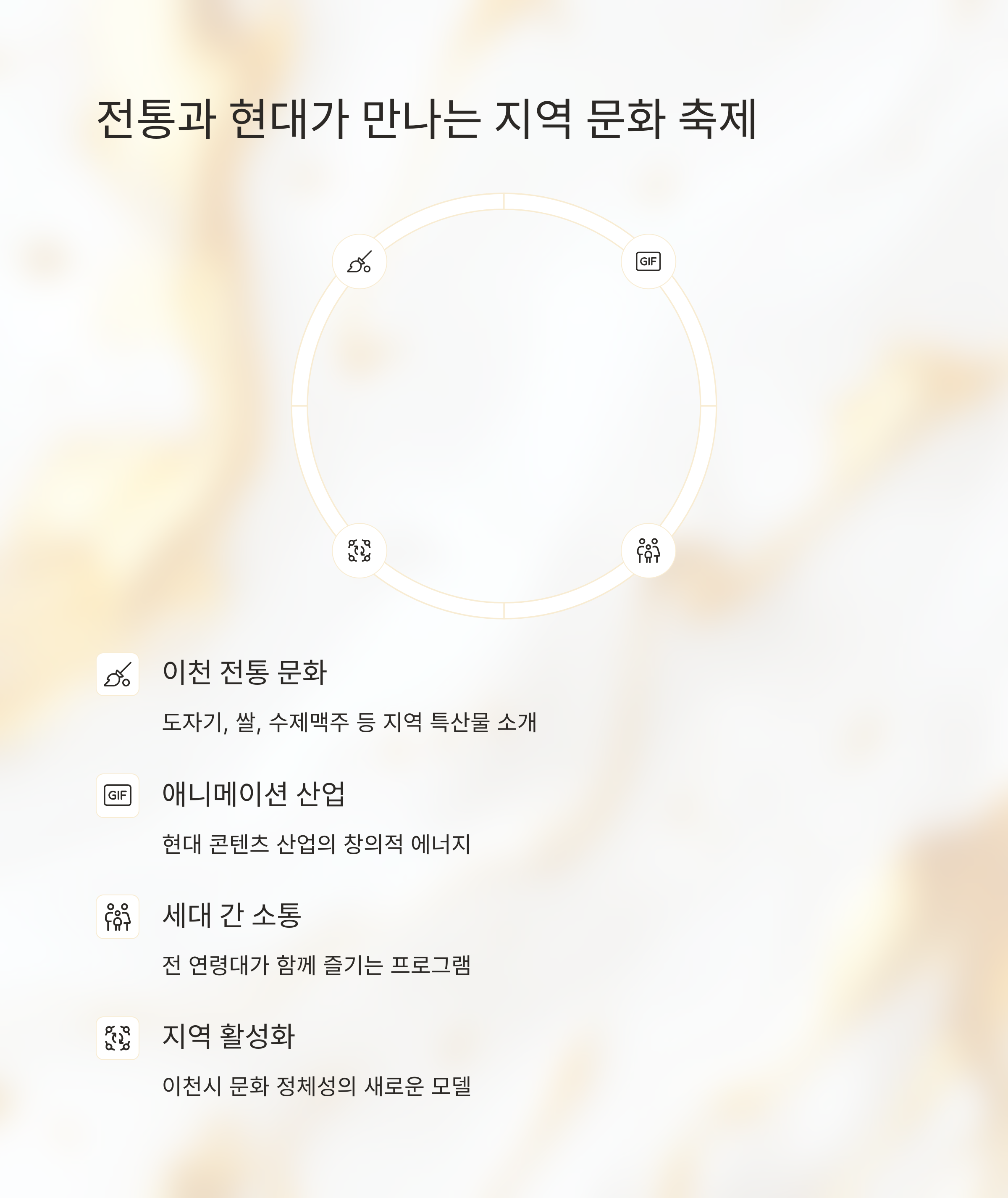 이 축제는 이천의 전통 문화와 현대 콘텐츠 산업이 결합된 지역 대표 문화행사로
