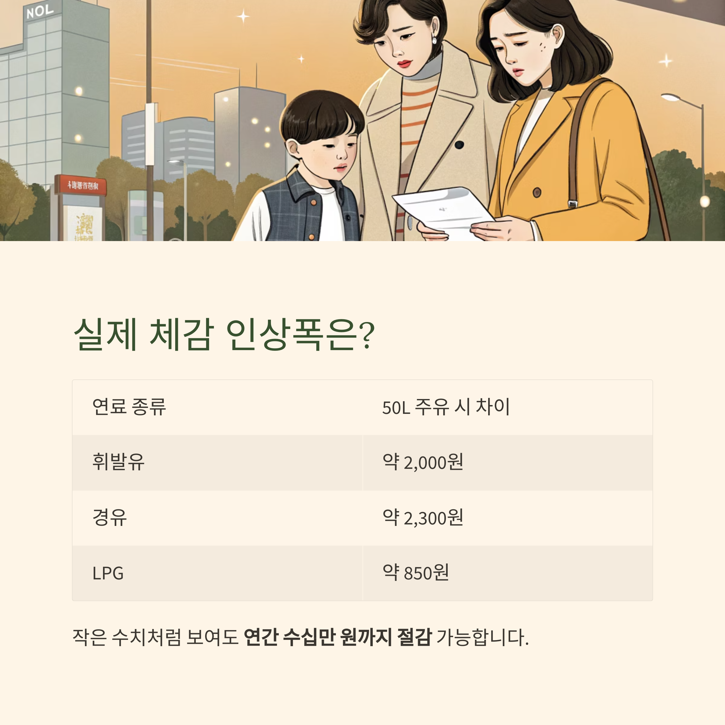 연료 종류 50L 주유 시 인상 전후 가격 차이