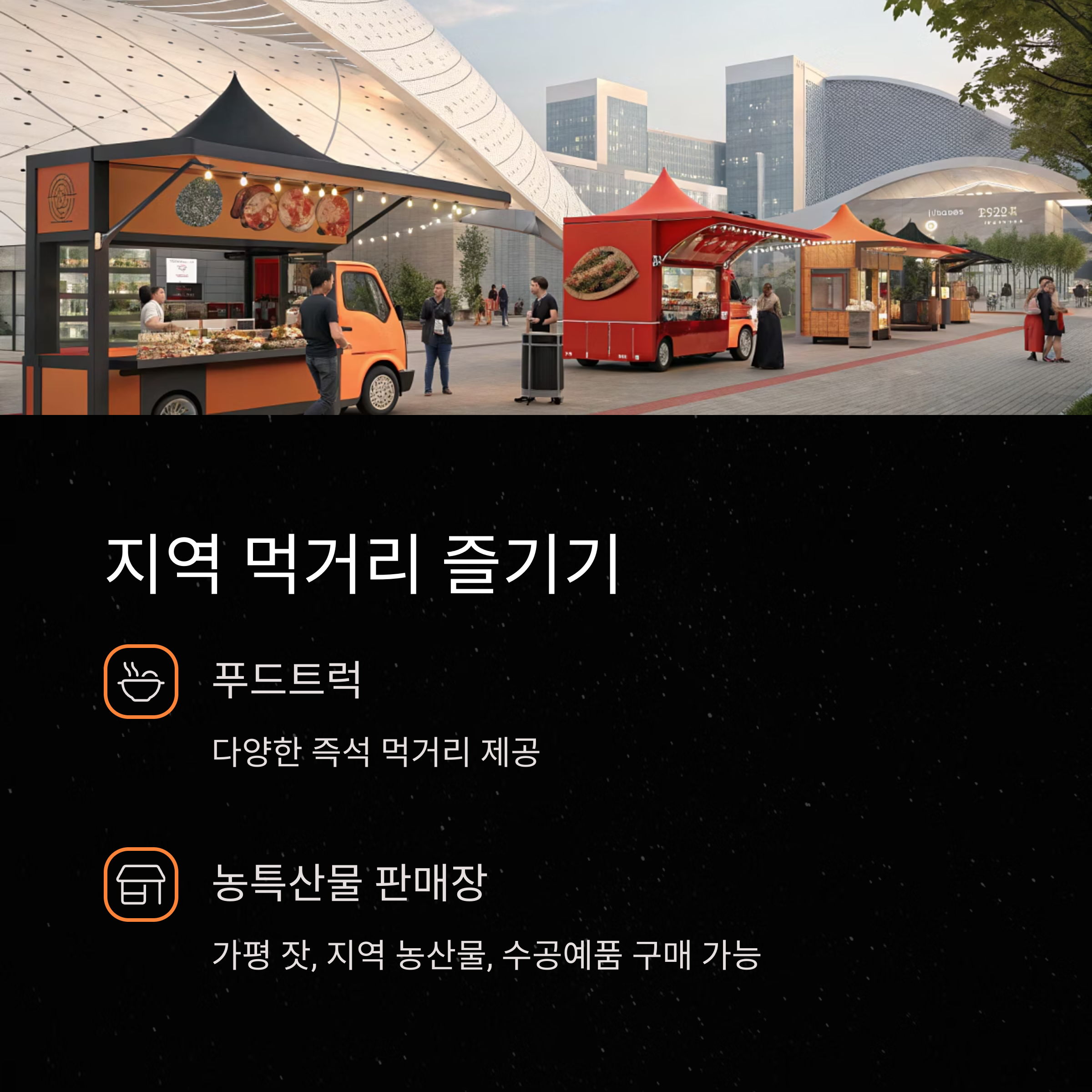 꽃 구경 후 허기를 달래줄 먹거리 부스와 지역 농특산물 판매장도