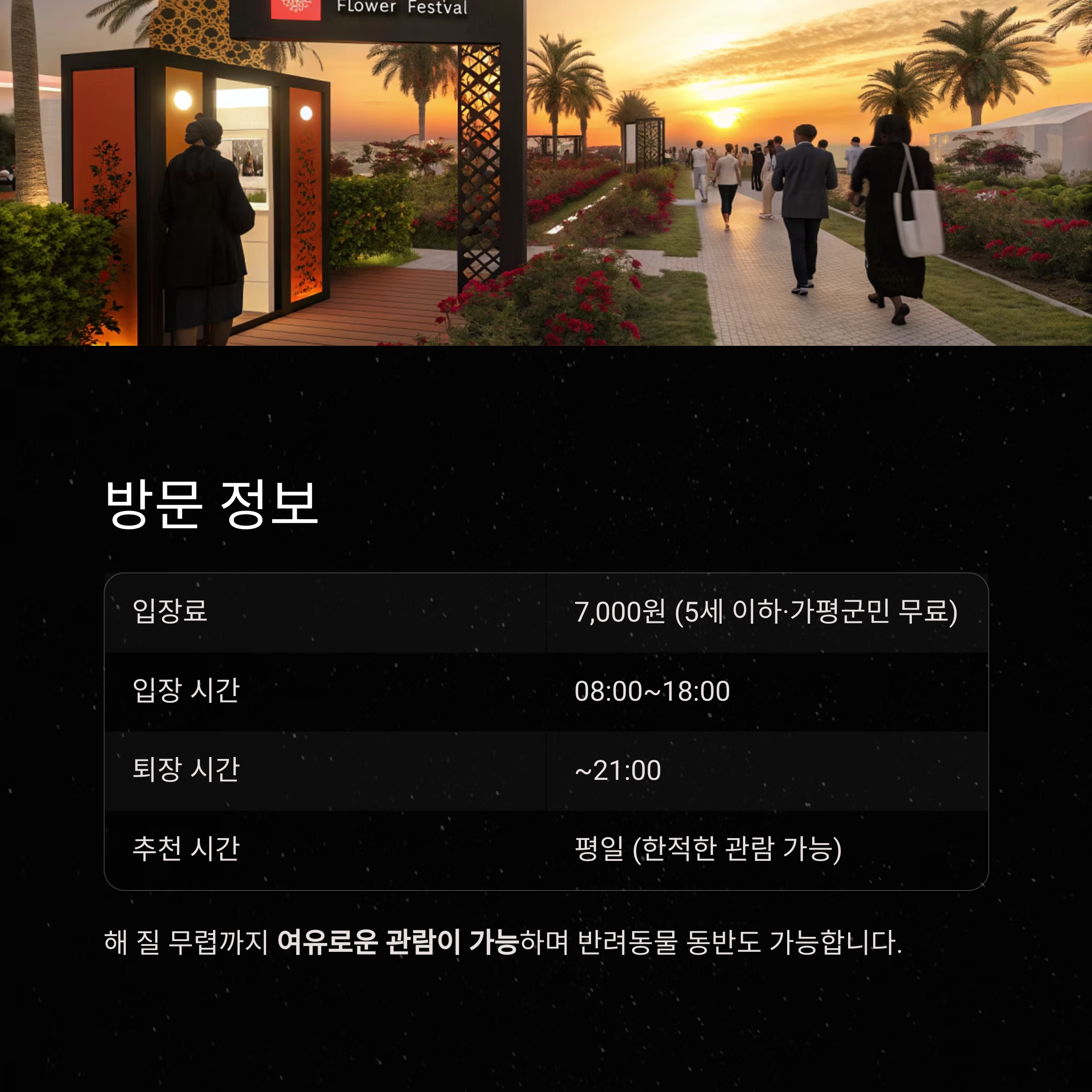 꽃과 문화, 체험과 쉼이 공존하는 특별한 시간을 만나보세요.