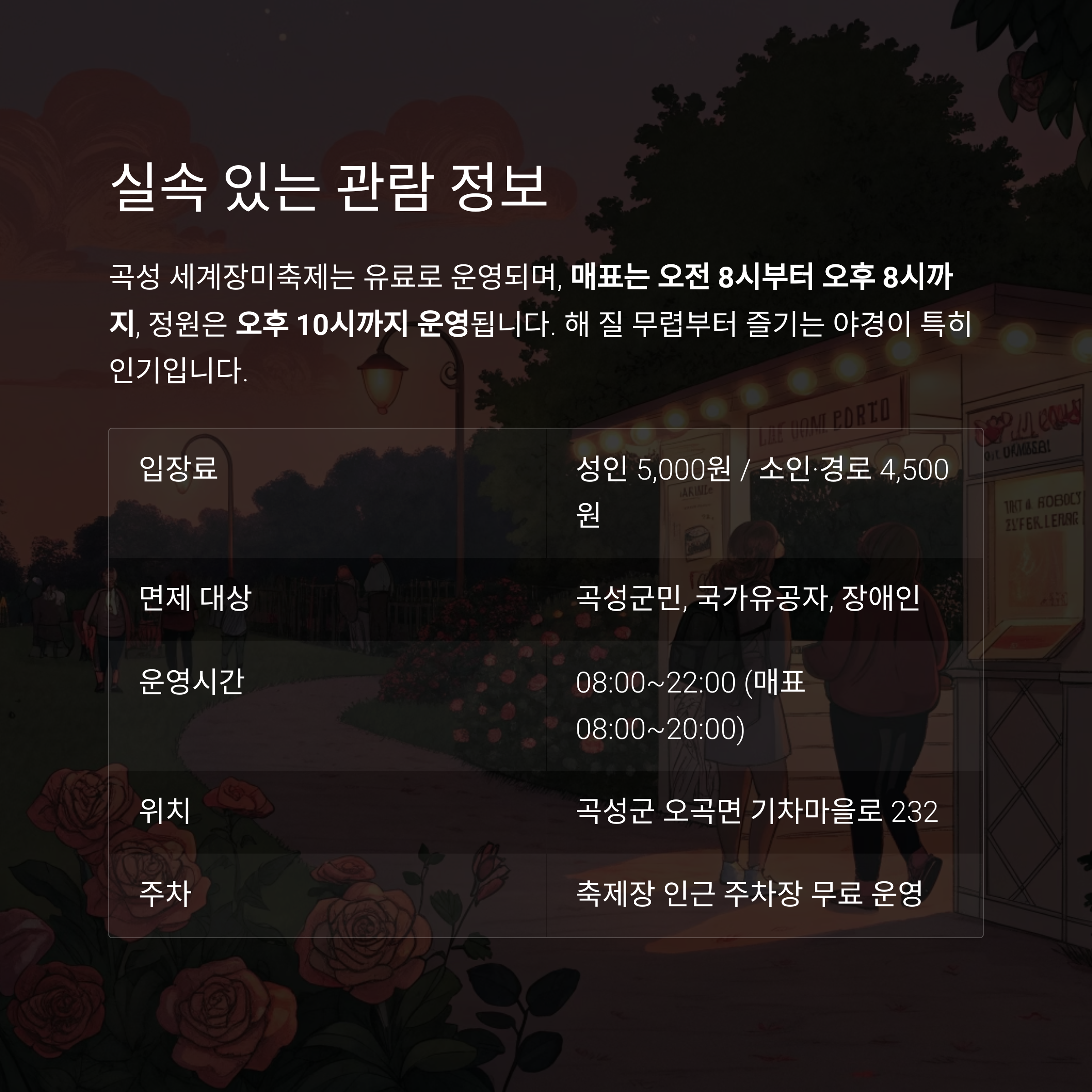 곡성 세계장미축제는 유료 축제로 운영되며