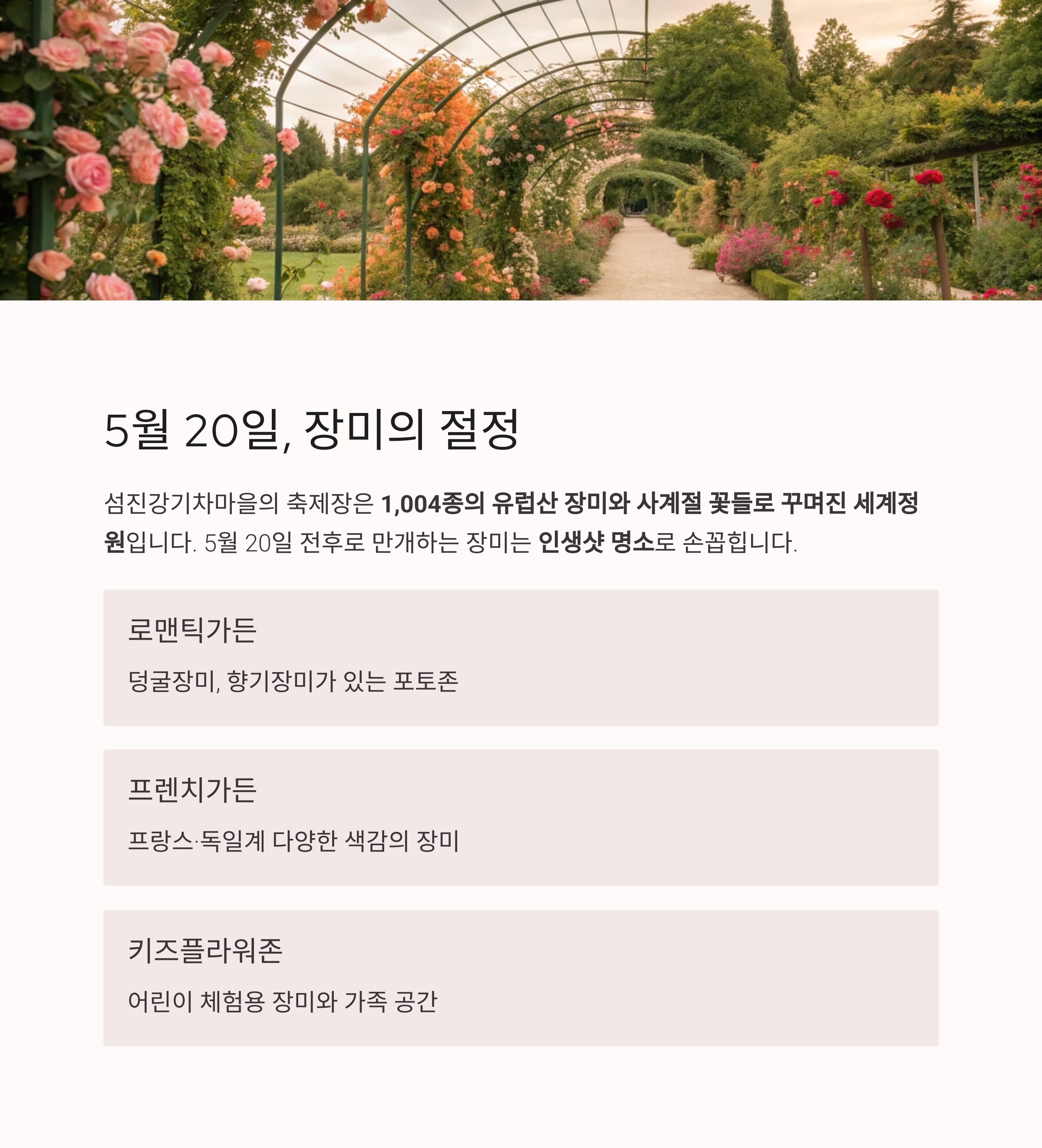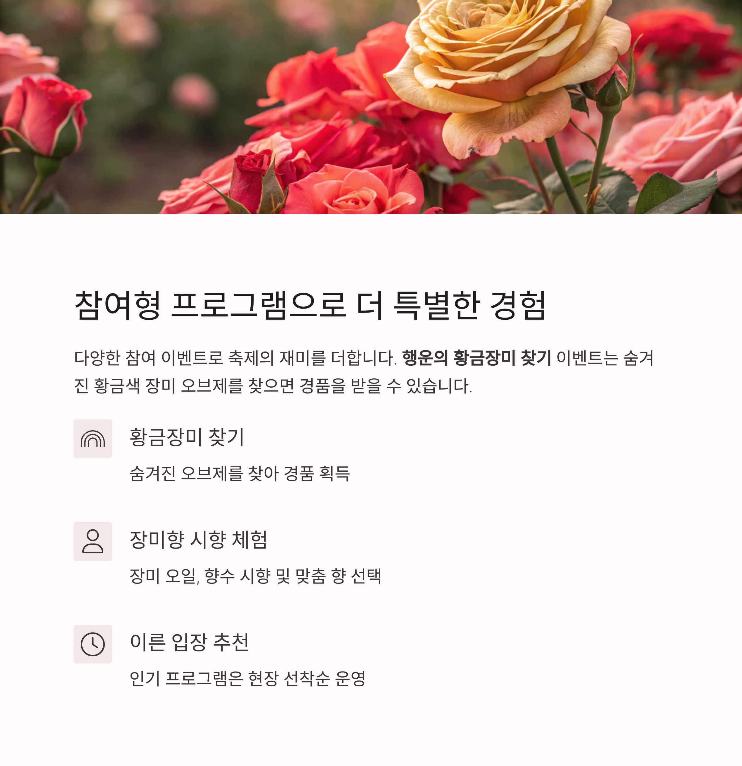| 키즈플라워존 | 어린이 체험용 장미 | 가족 중심 공간 |