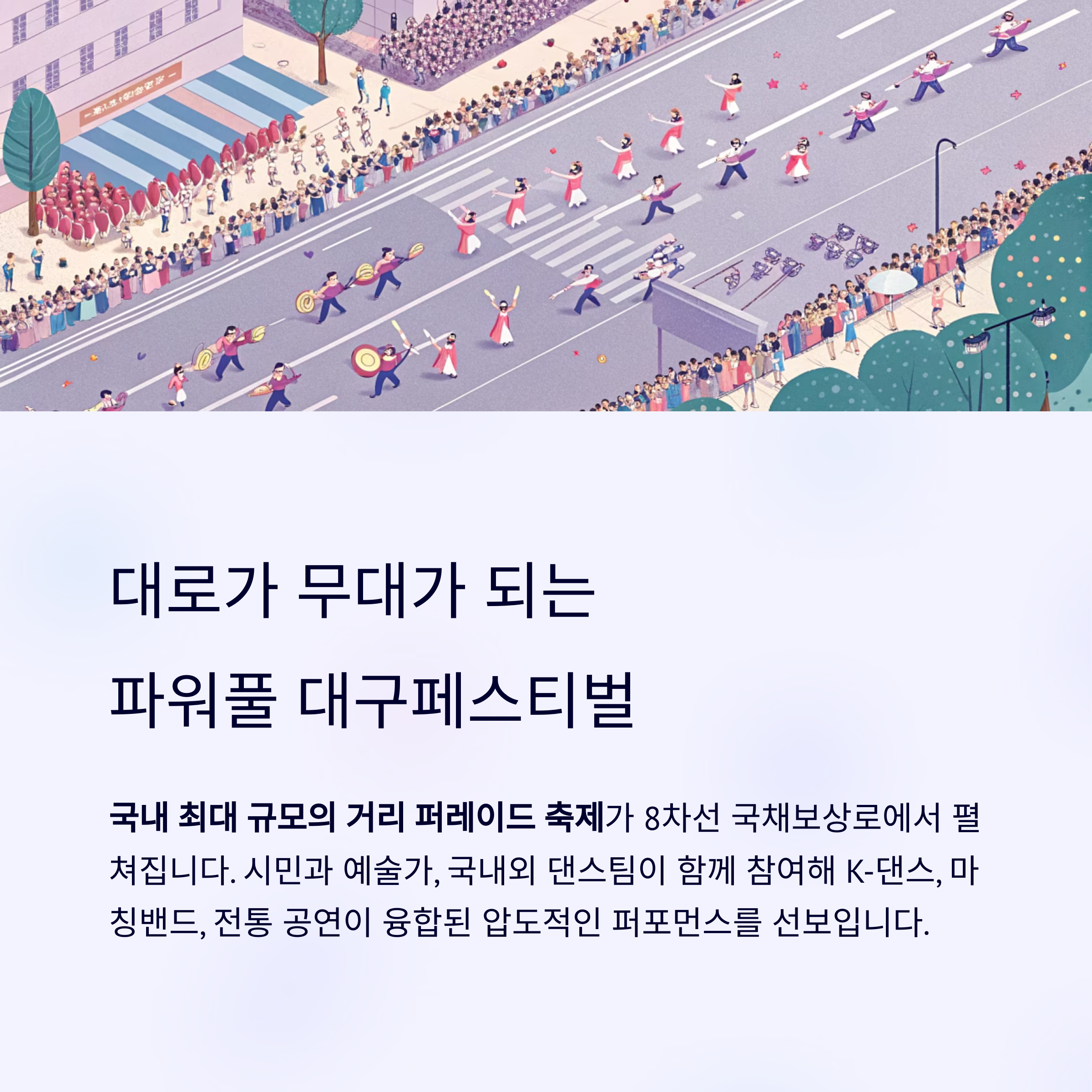 열정적인 거리 퍼레이드로 도심을 가득 채우는 파워풀대구페스티벌이