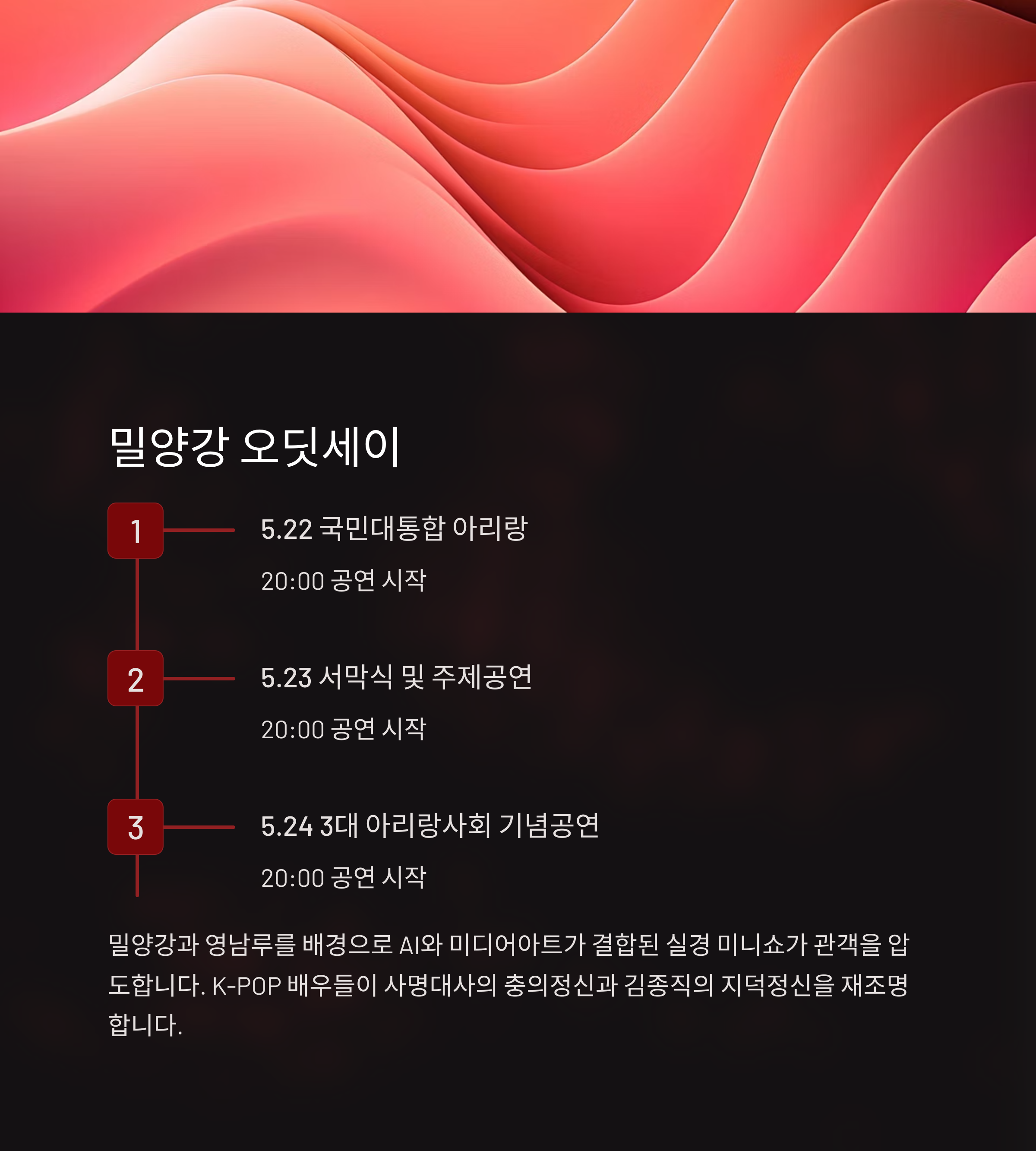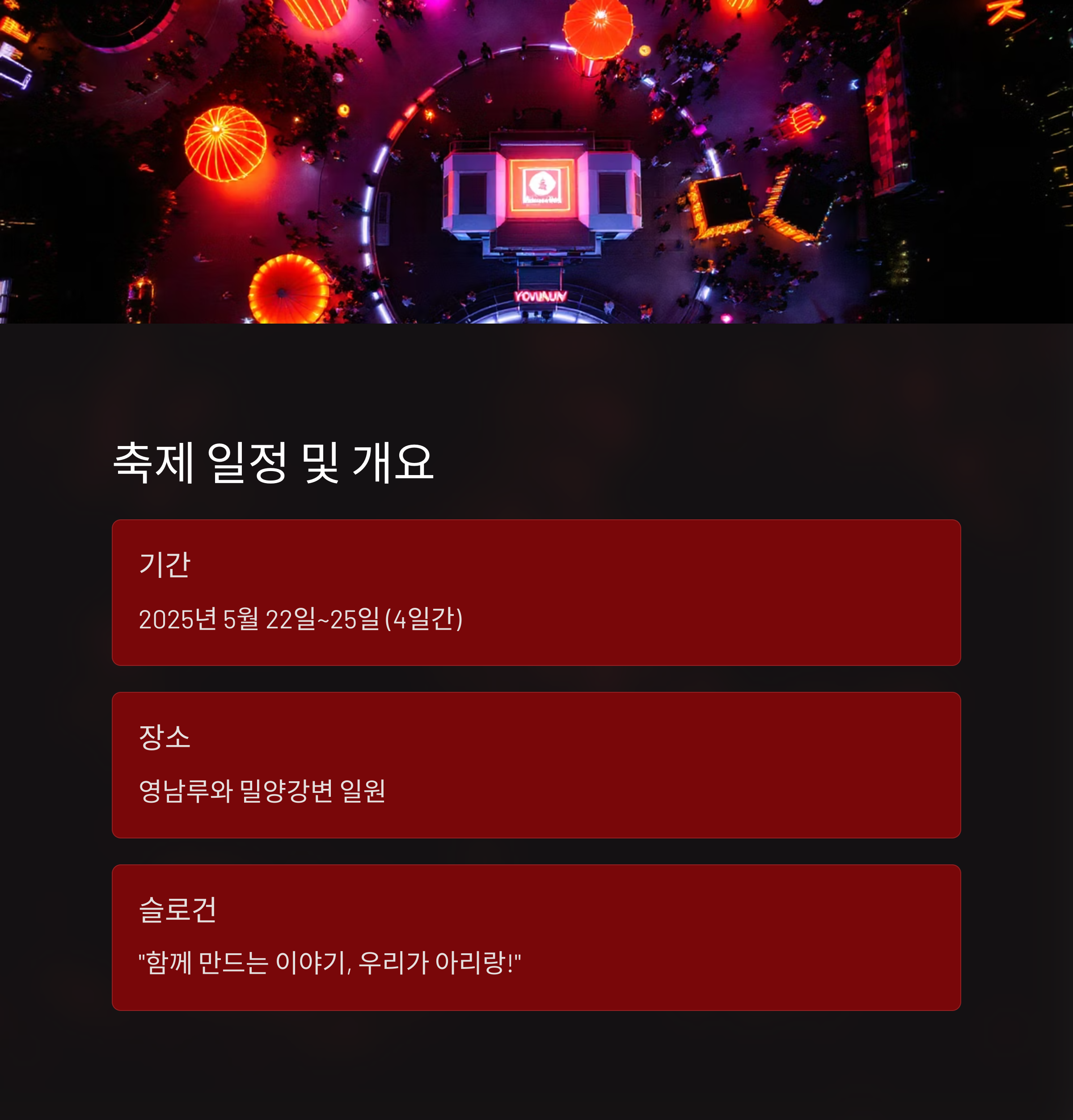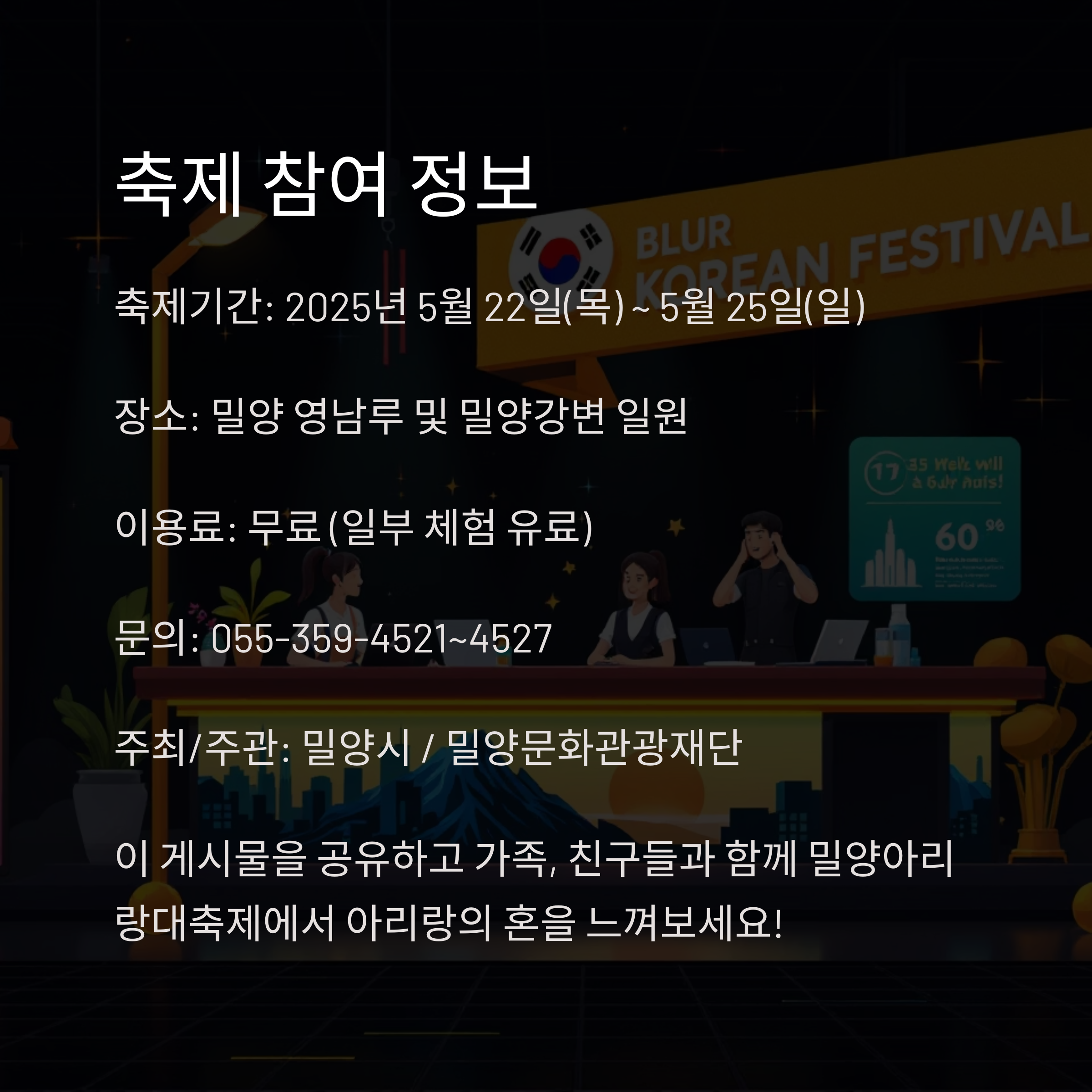 - 주최/주관: 밀양시 / 밀양문화관광재단