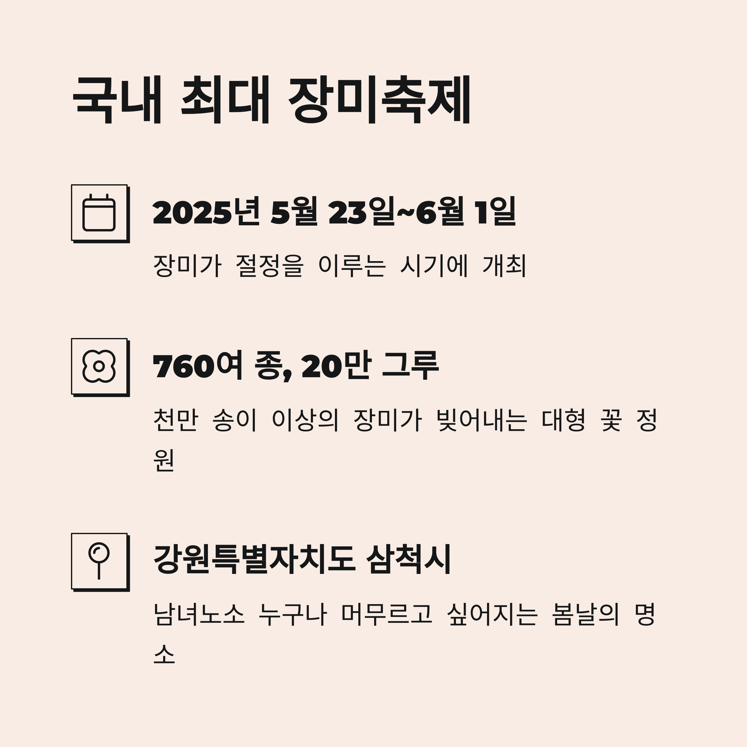 삼척 장미축제가 2025년 5월 23일부터 6월 1일까지
