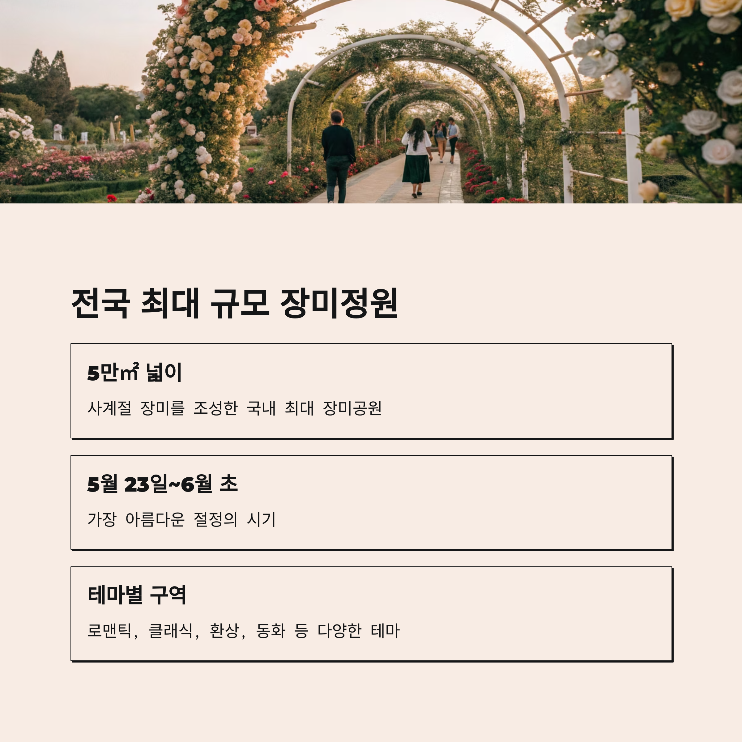 760여 종, 20만여 그루, 천만 송이 이상의 장미가 빚어내는 대형 꽃 정원으로,