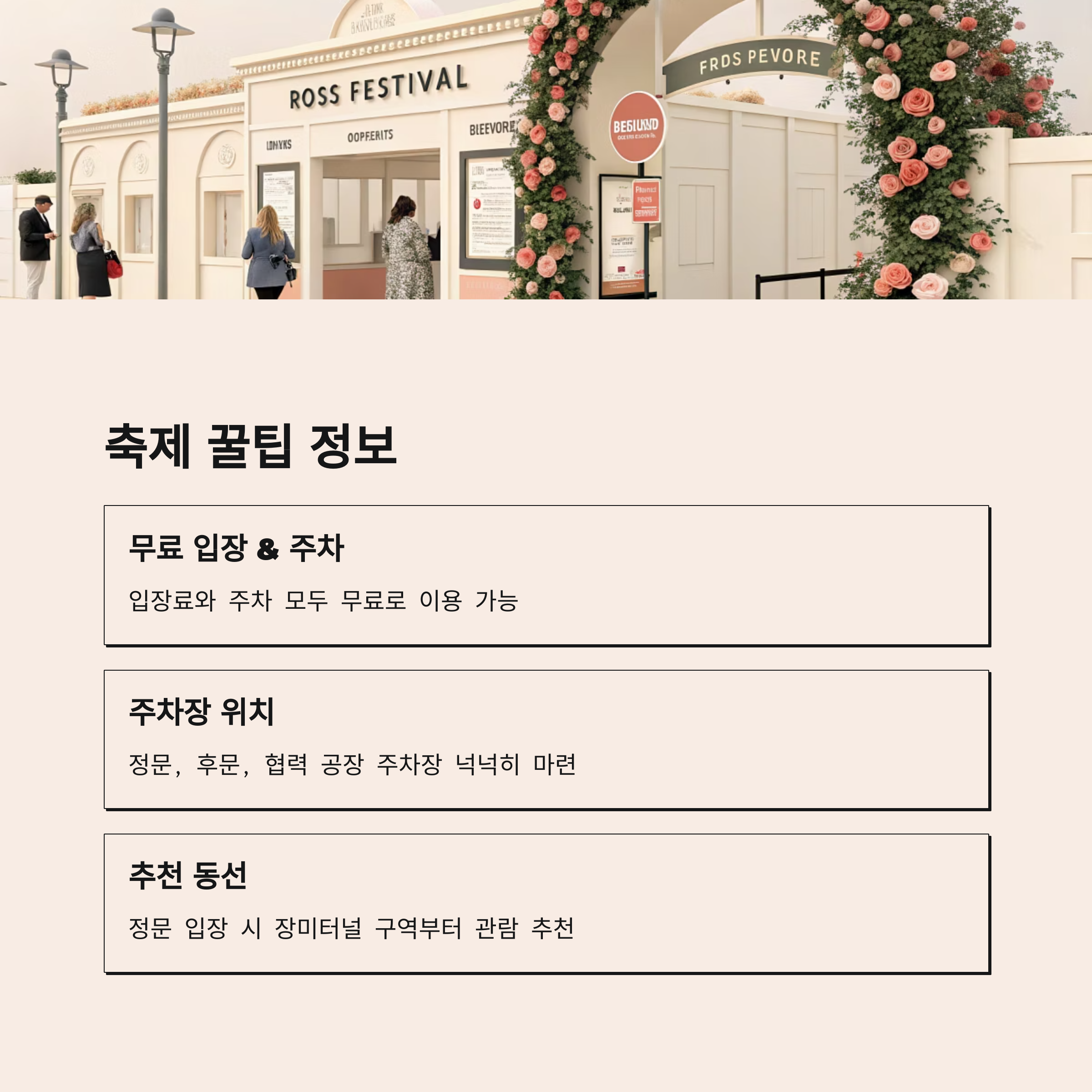특히 주차장 위치는 미리 확인 후, 정문에서 입장 시 장미터널 구역이 가장 먼저 등장해