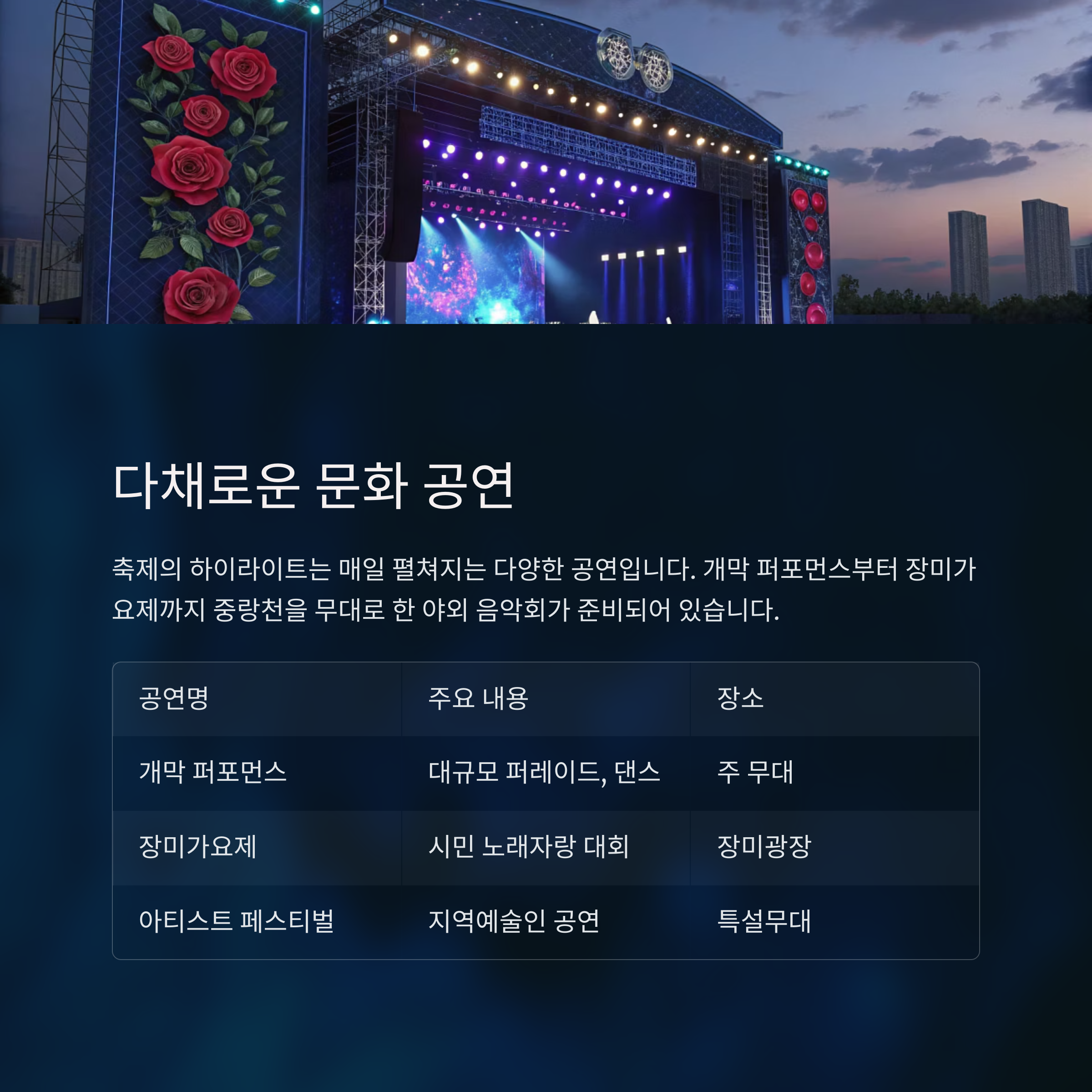 개막 퍼포먼스부터 장미가요제까지, 다채로운 문화 공연