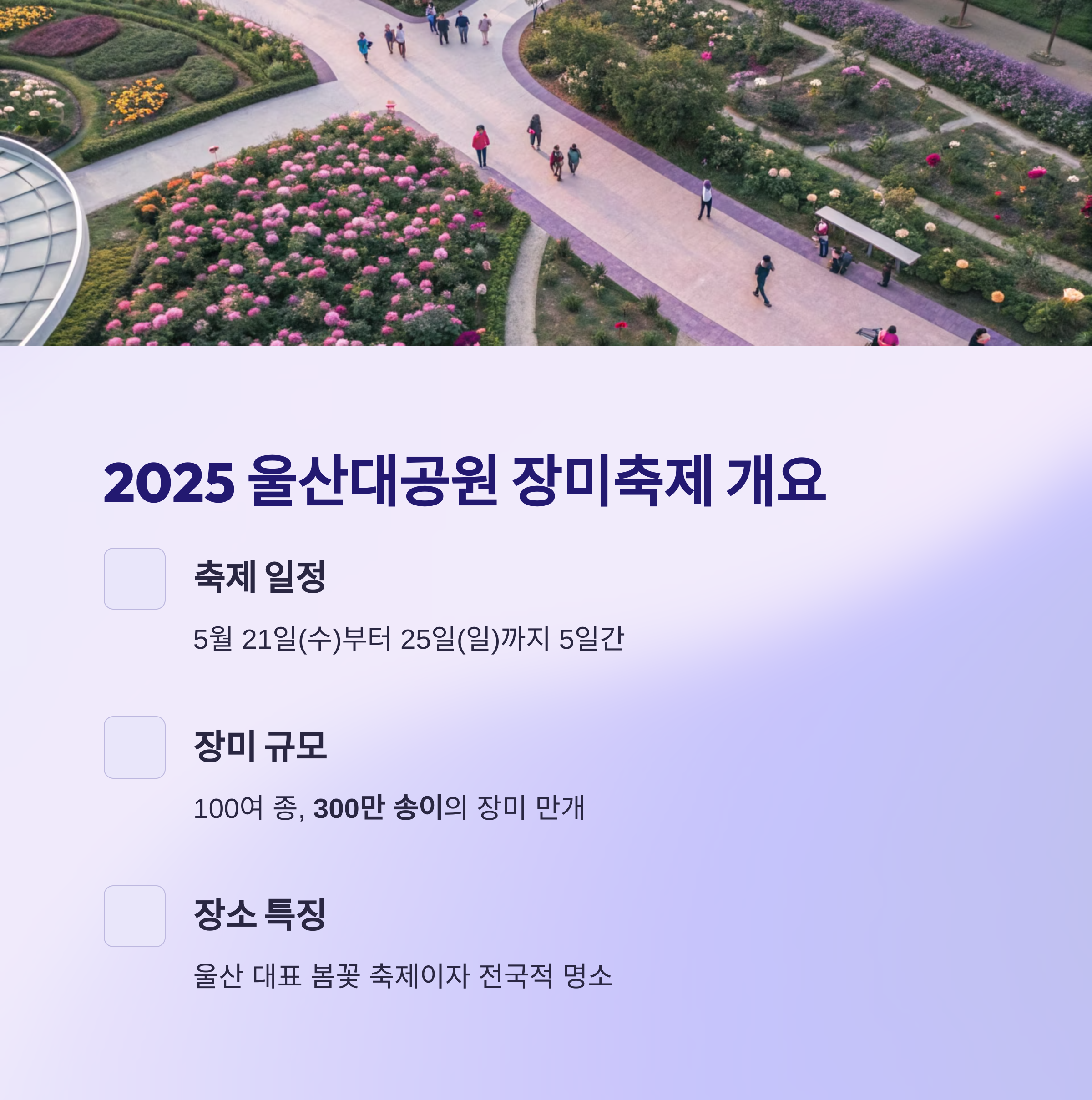 | 장소 | 울산광역시 남구 남부순환도로 377, 울산대공원 장미원 일대 |