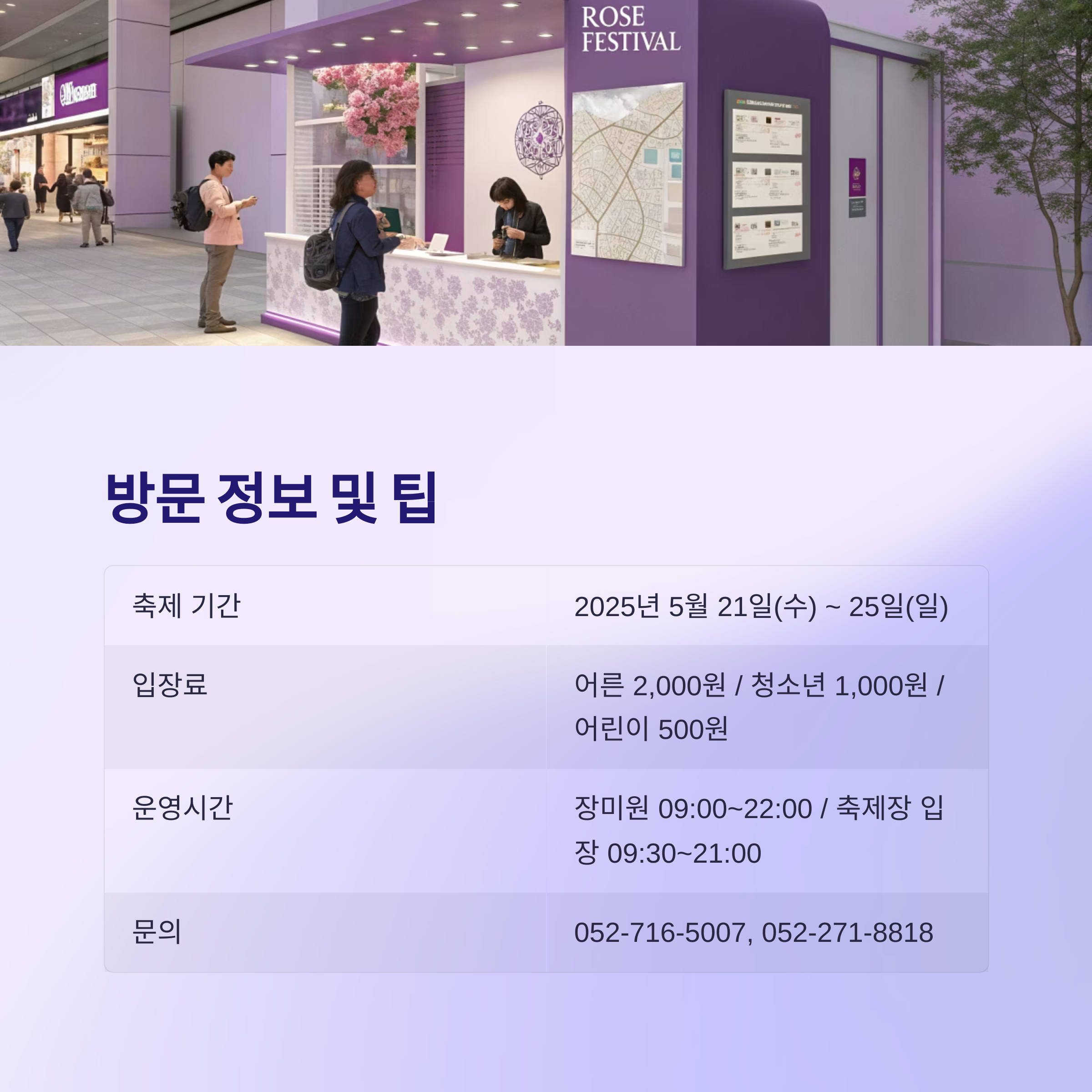 | 문의 | 울산대공원 장미원 052-716-5007, 052-271-8818 |