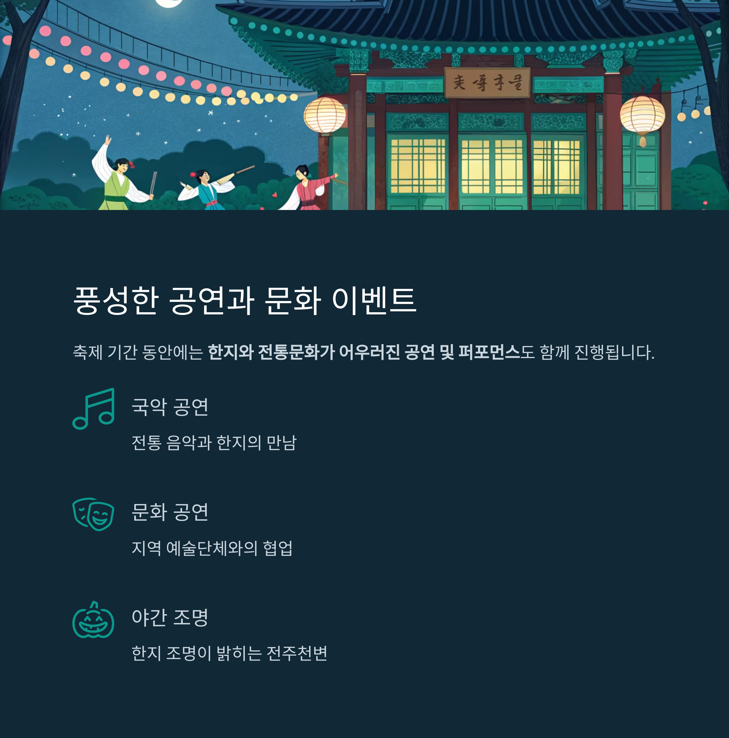 지역 예술단체와 협업한 문화공연이 축제 분위기를 더욱 풍성하게 만듭니다.