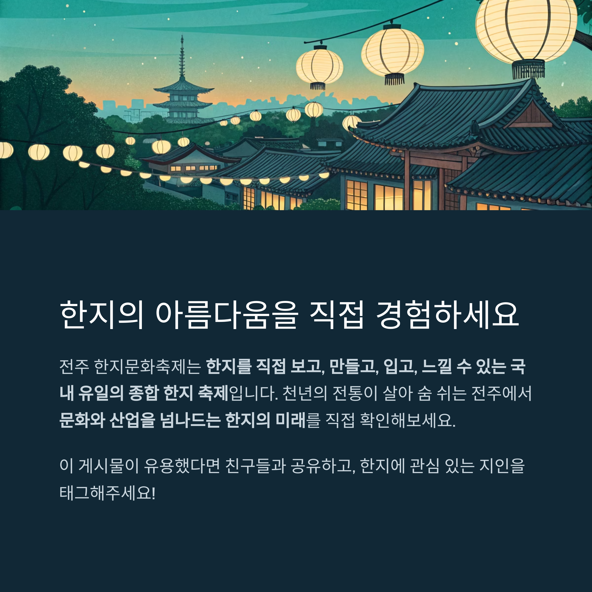 문화와 산업을 넘나드는 한지의 미래를 직접 확인해보시기 바랍니다.