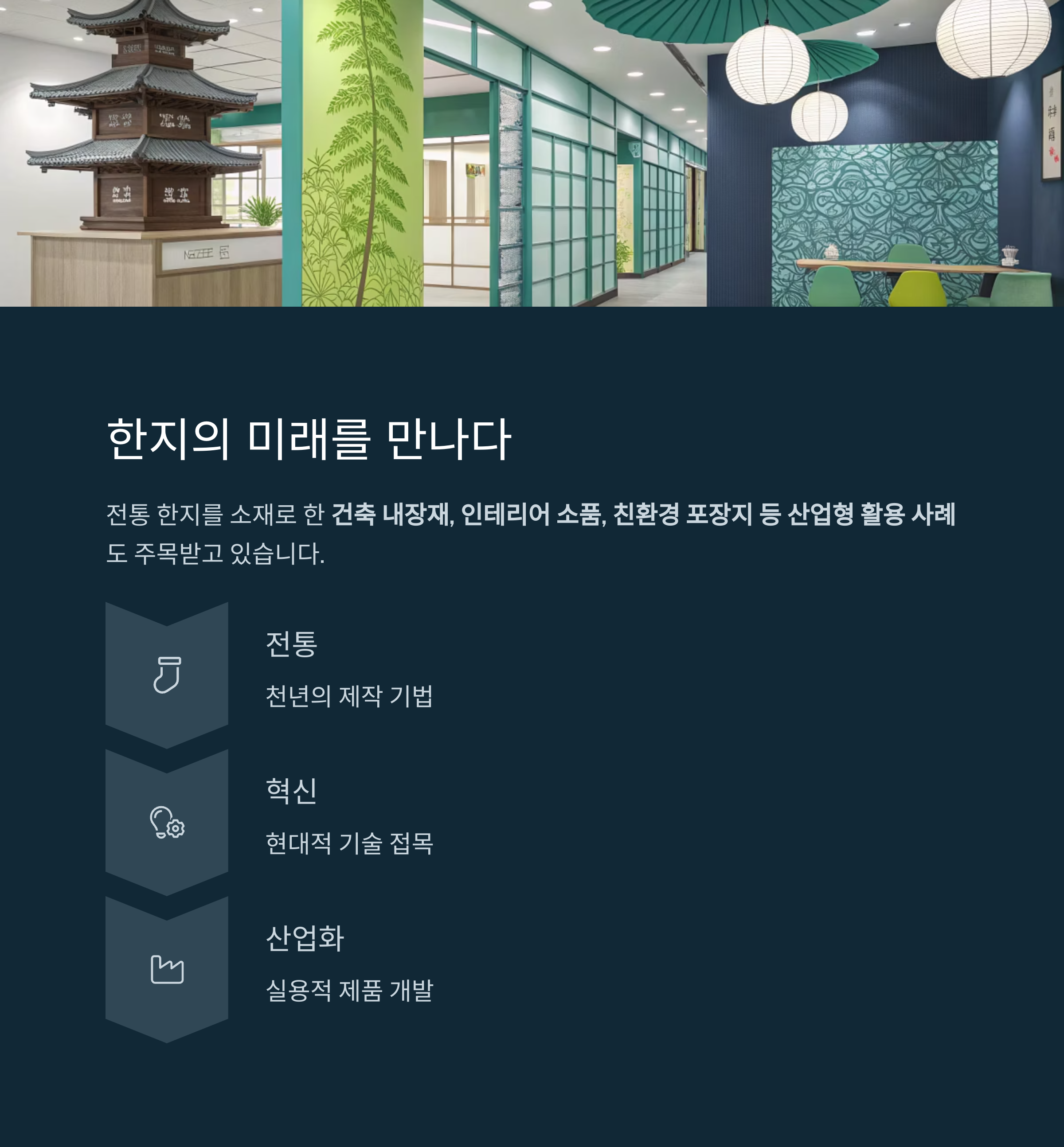 현대 산업으로 확장하는 전주 한지의 방향성을 선명하게 드러냅니다.