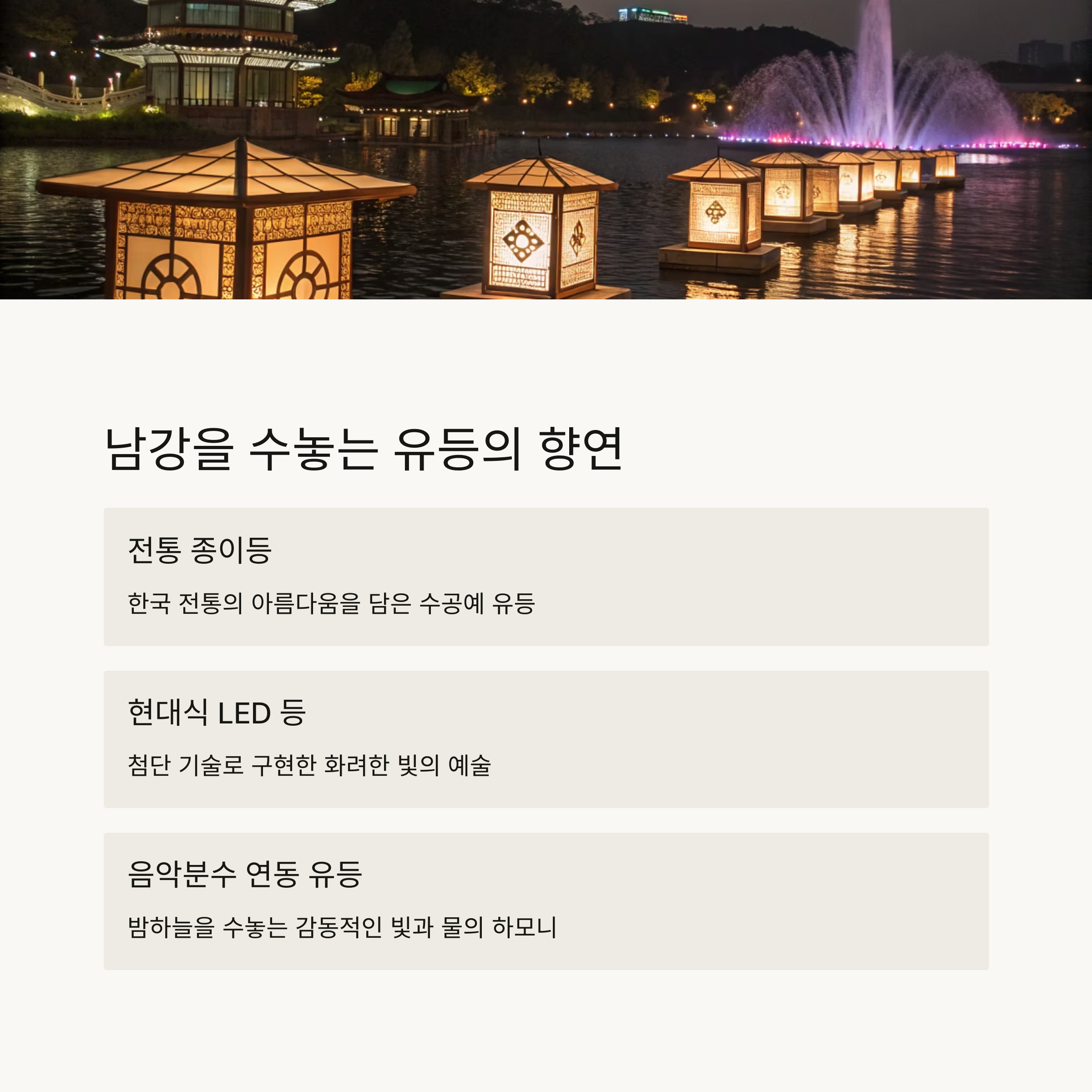 축제의 핵심은 단연 남강 위를 수놓는 수천 개의 유등입니다.