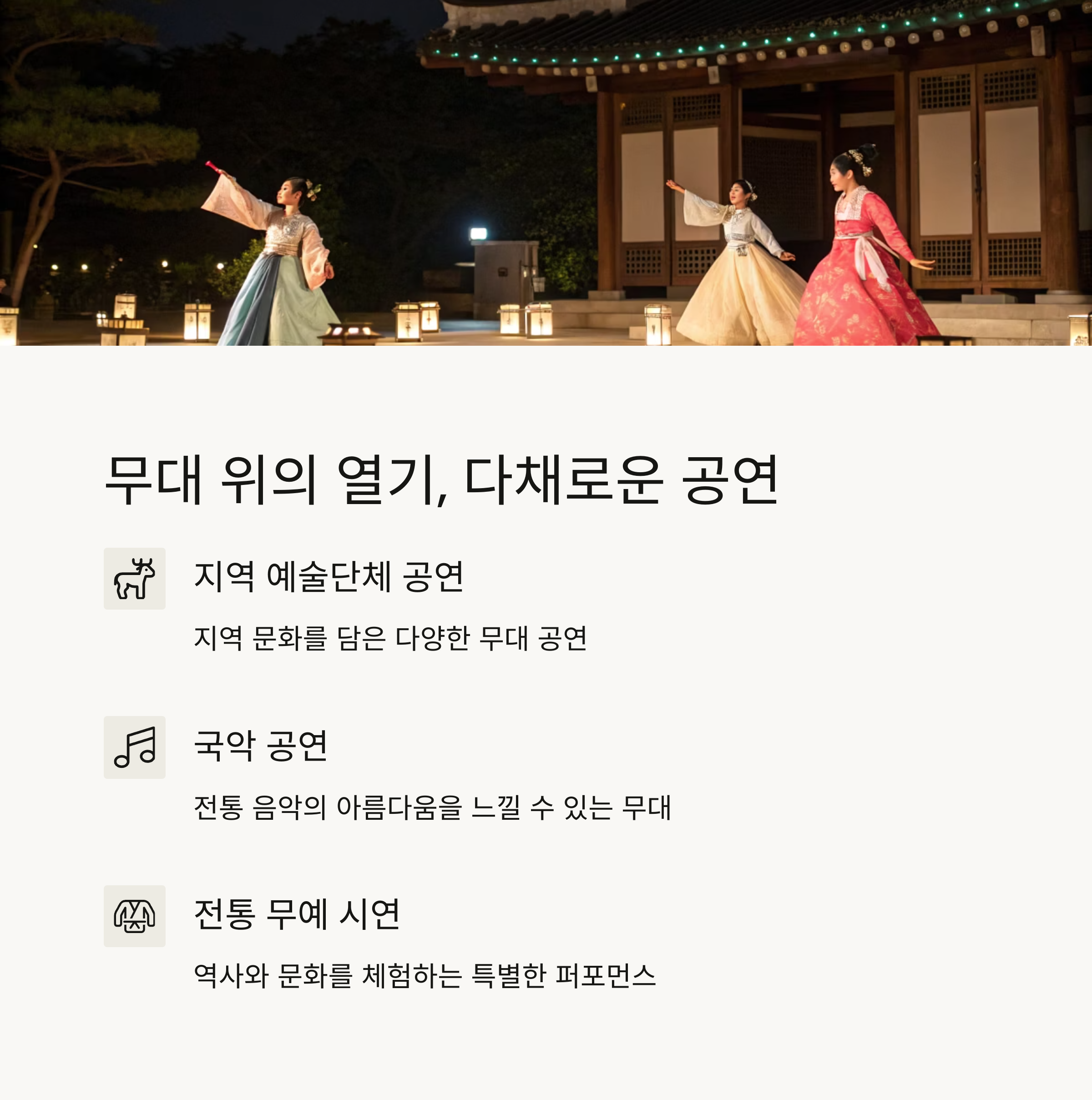 지역 예술단체, 국악 공연, 전통 무예 시연 등