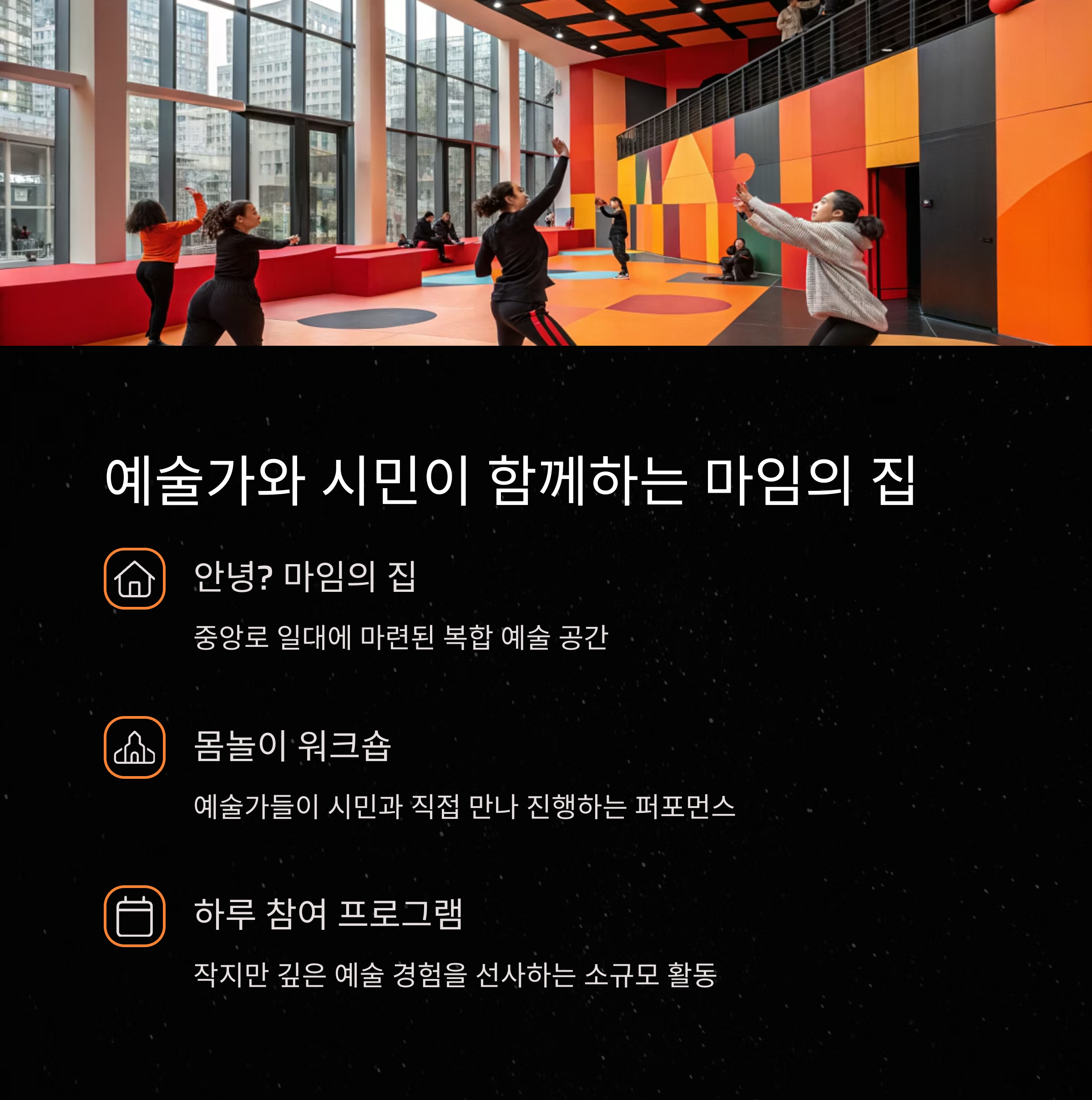 공연, 전시, 워크숍이 복합된 예술 공간입니다.