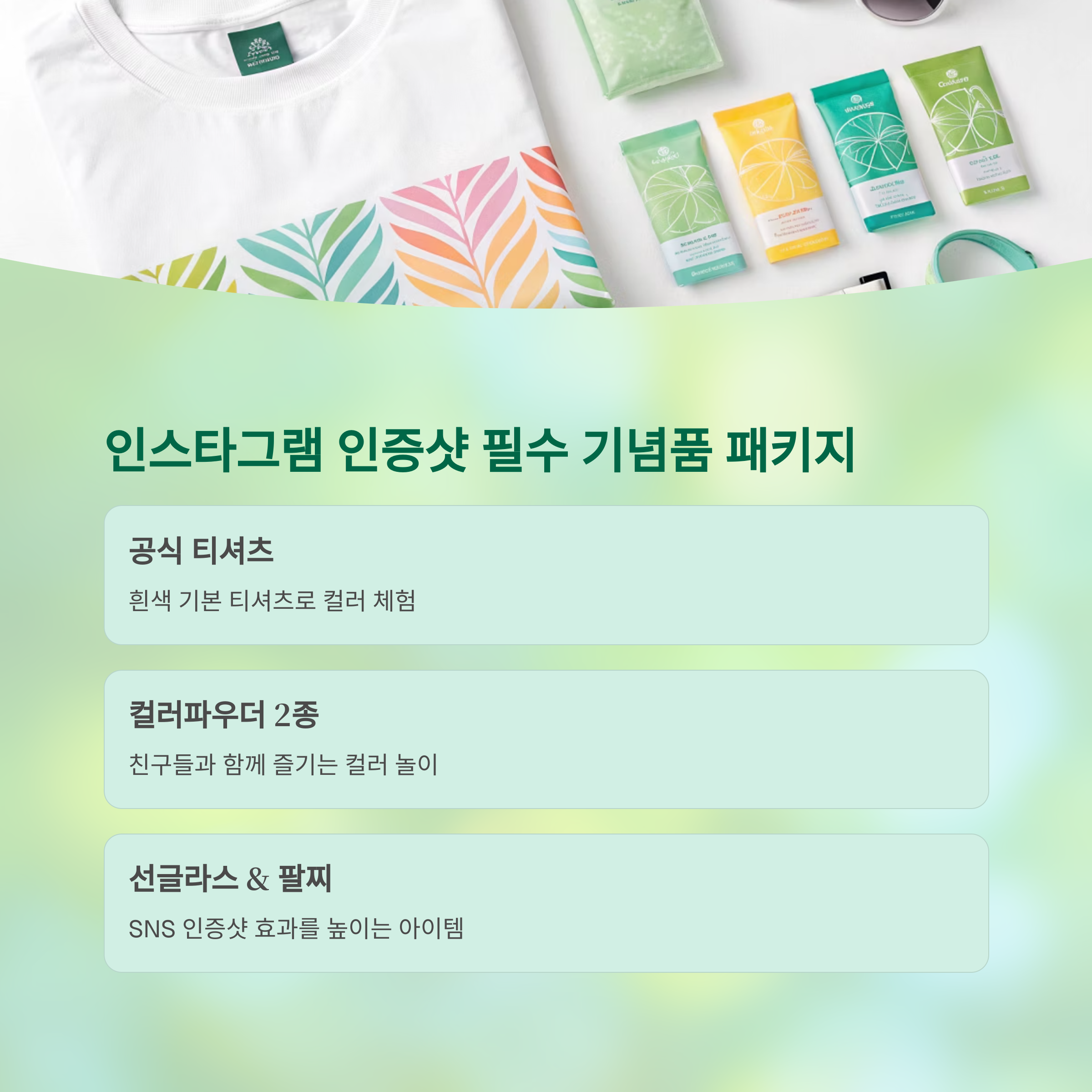 이 아이템들은 컬러레이의 필수 구성품으로, 행사 분위기 몰입도와 SNS 인증샷 효과를 높입니다.