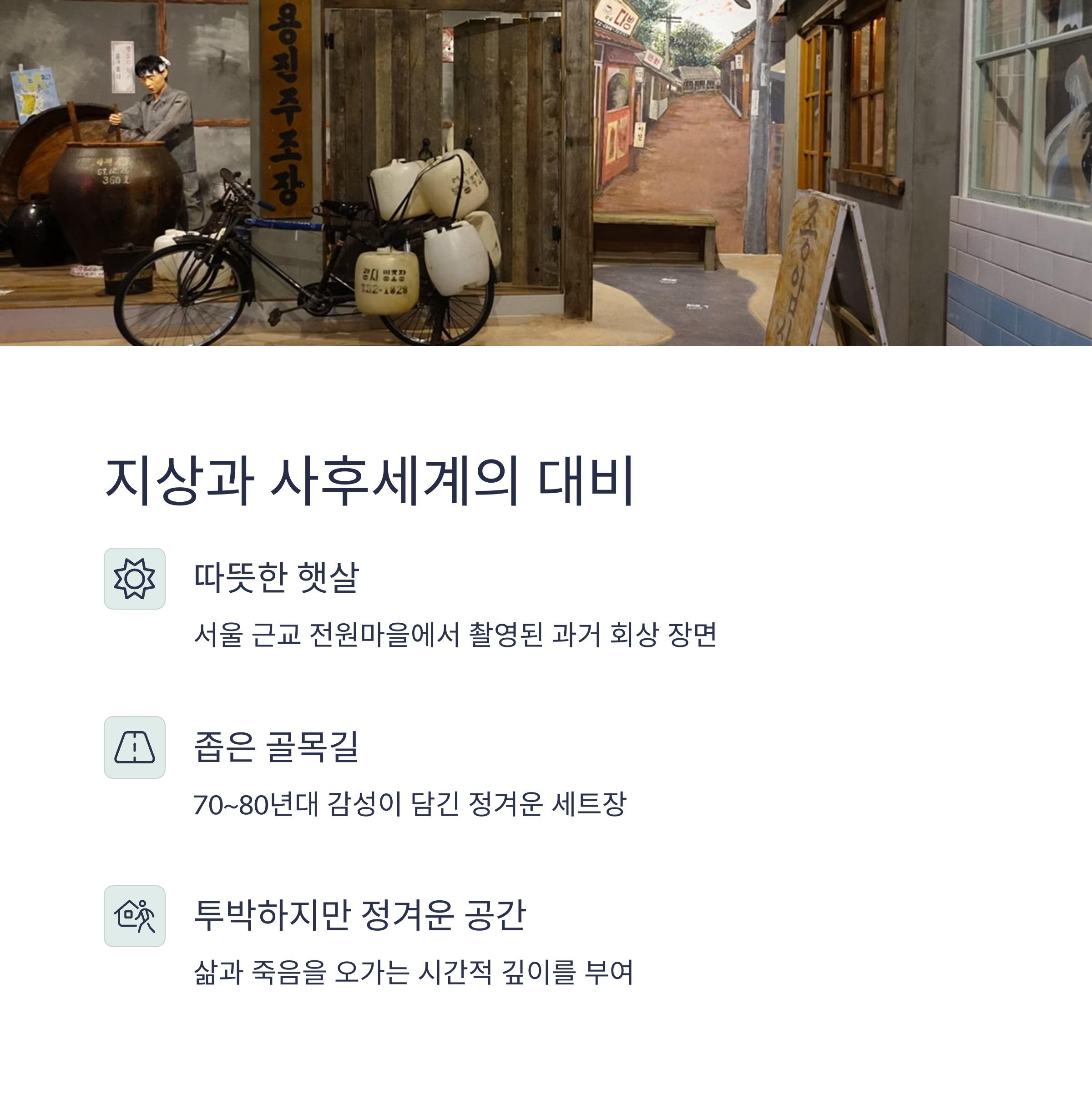 | 현실(지상) | 따뜻하고 정겨운 | 전원마을, 70~80년대 감성 |
